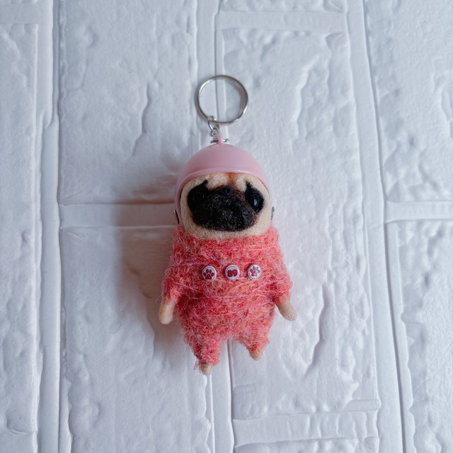 羊毛フェルトパグキーホルダーピンク