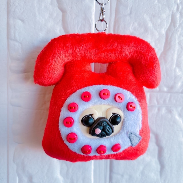パグキーホルダーレトロ赤電話