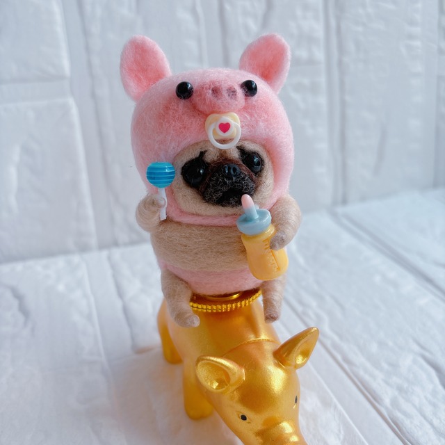 • 羊毛フェルトパグ豚とゴールド豚