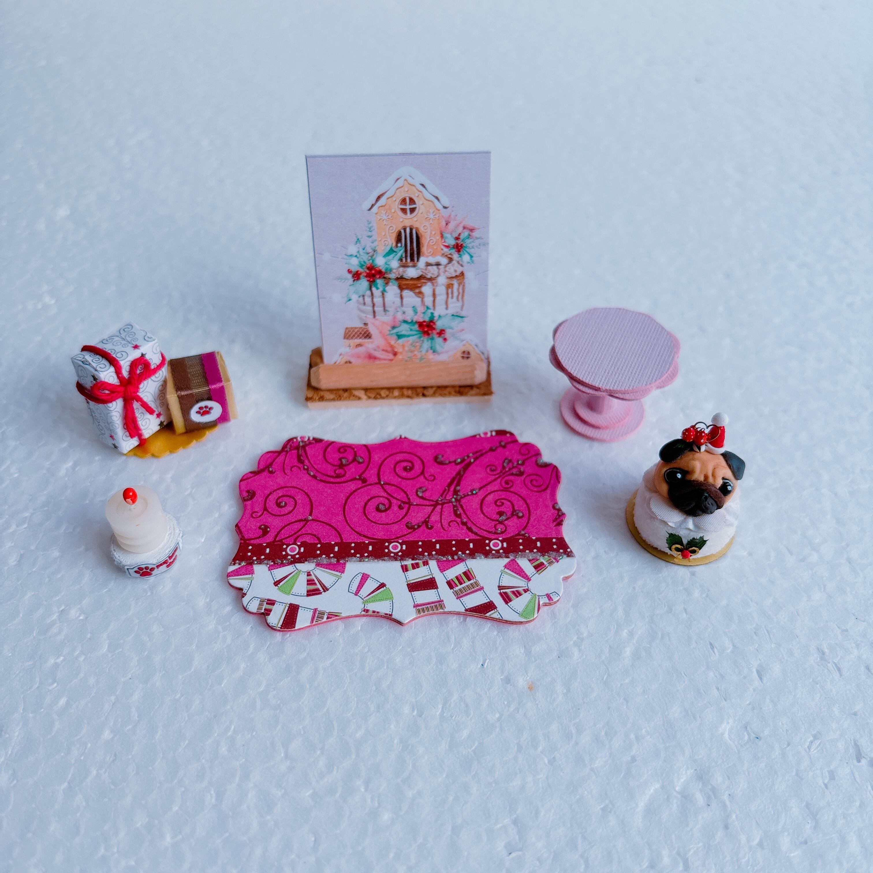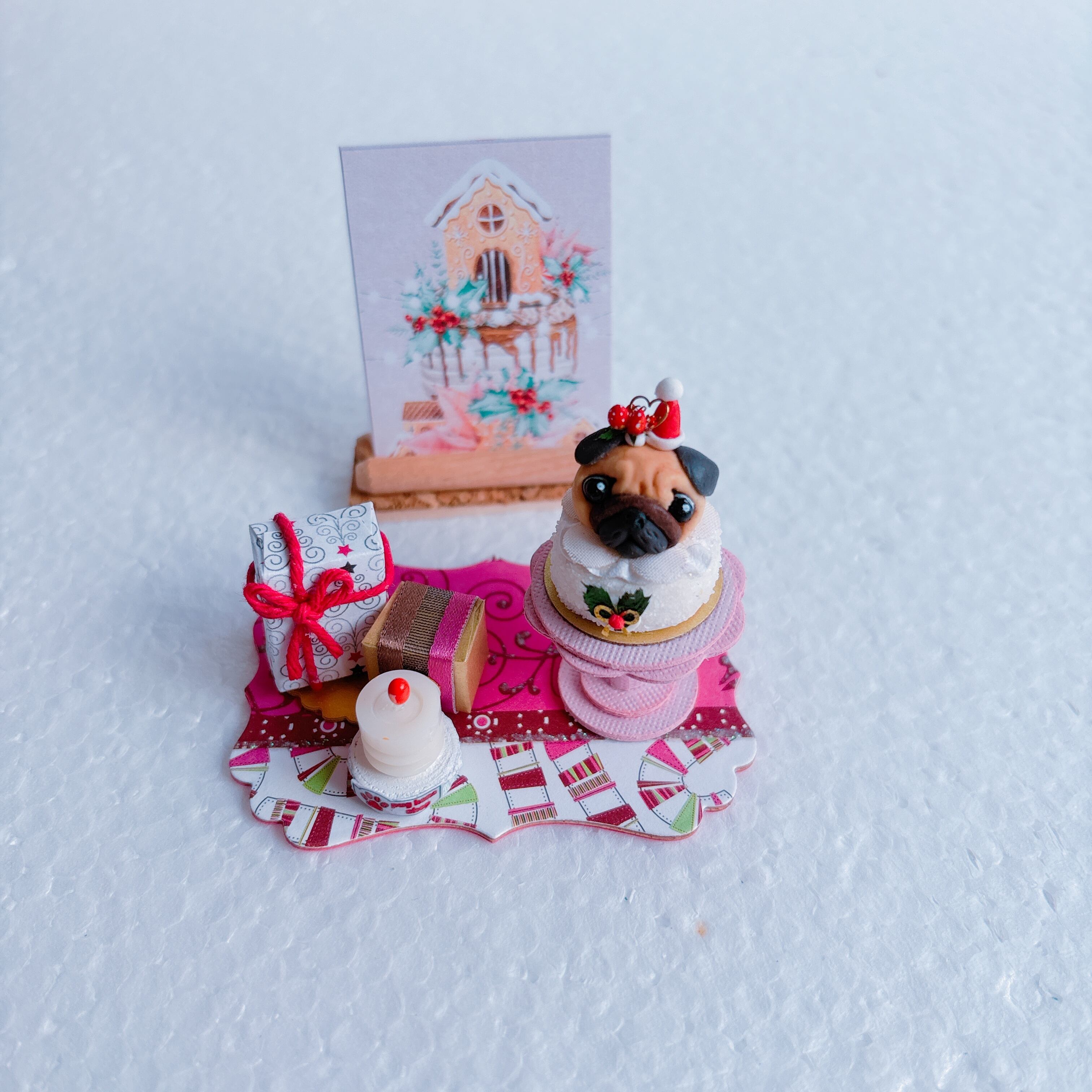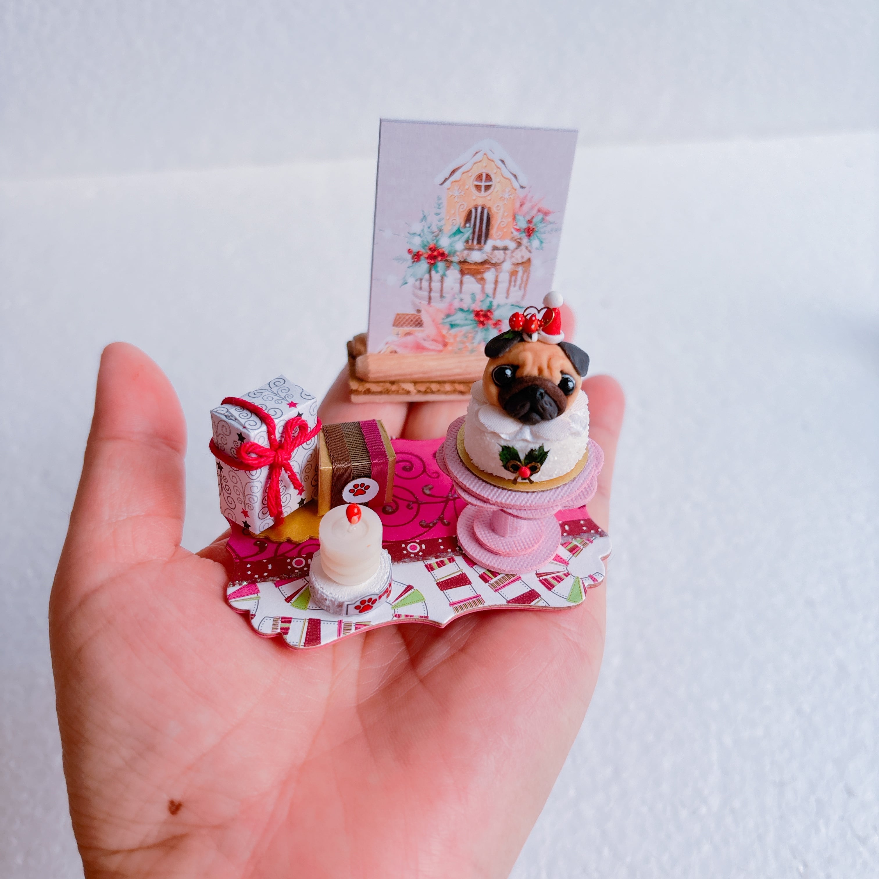 羊毛フェルトパグツリーとミニチュアパグケーキ