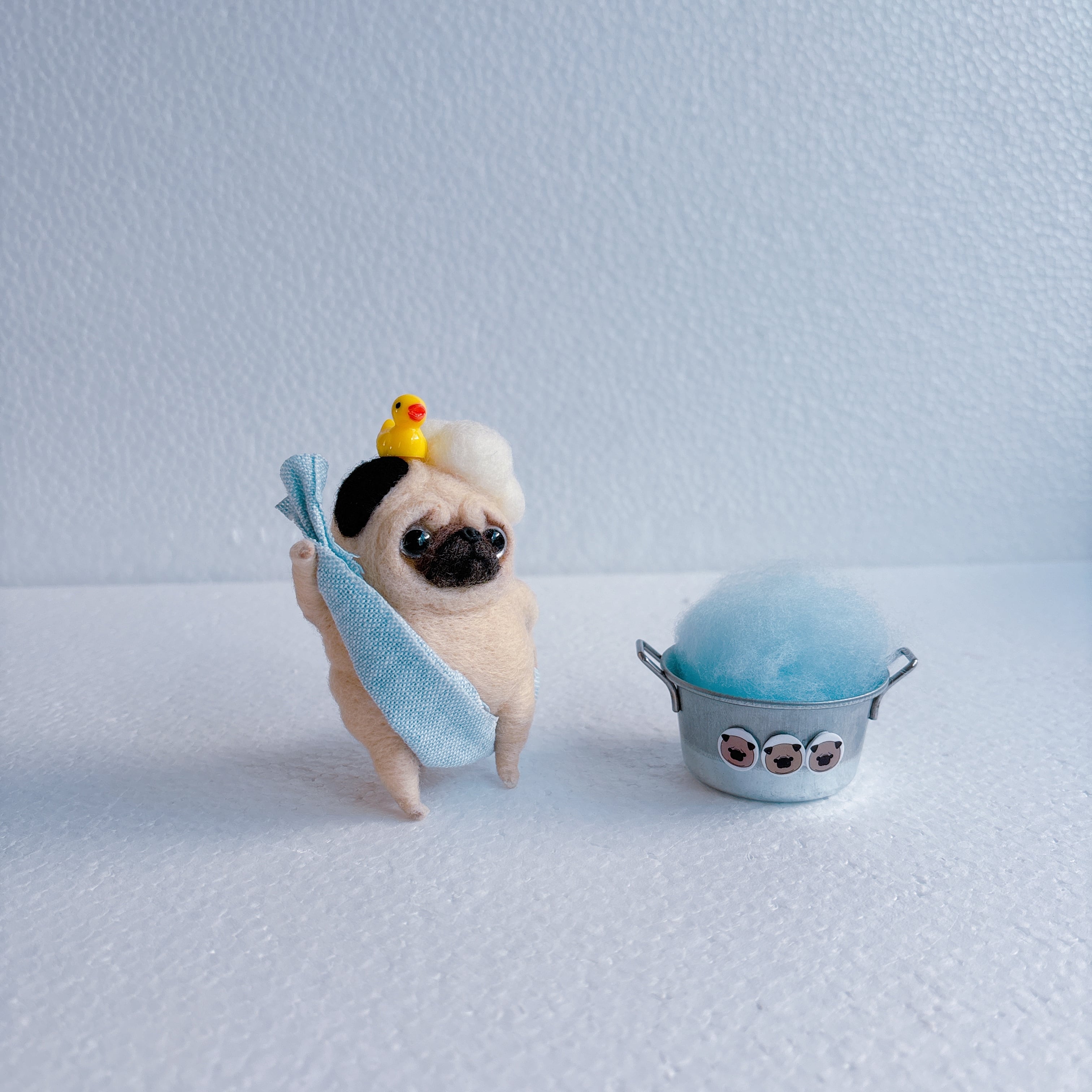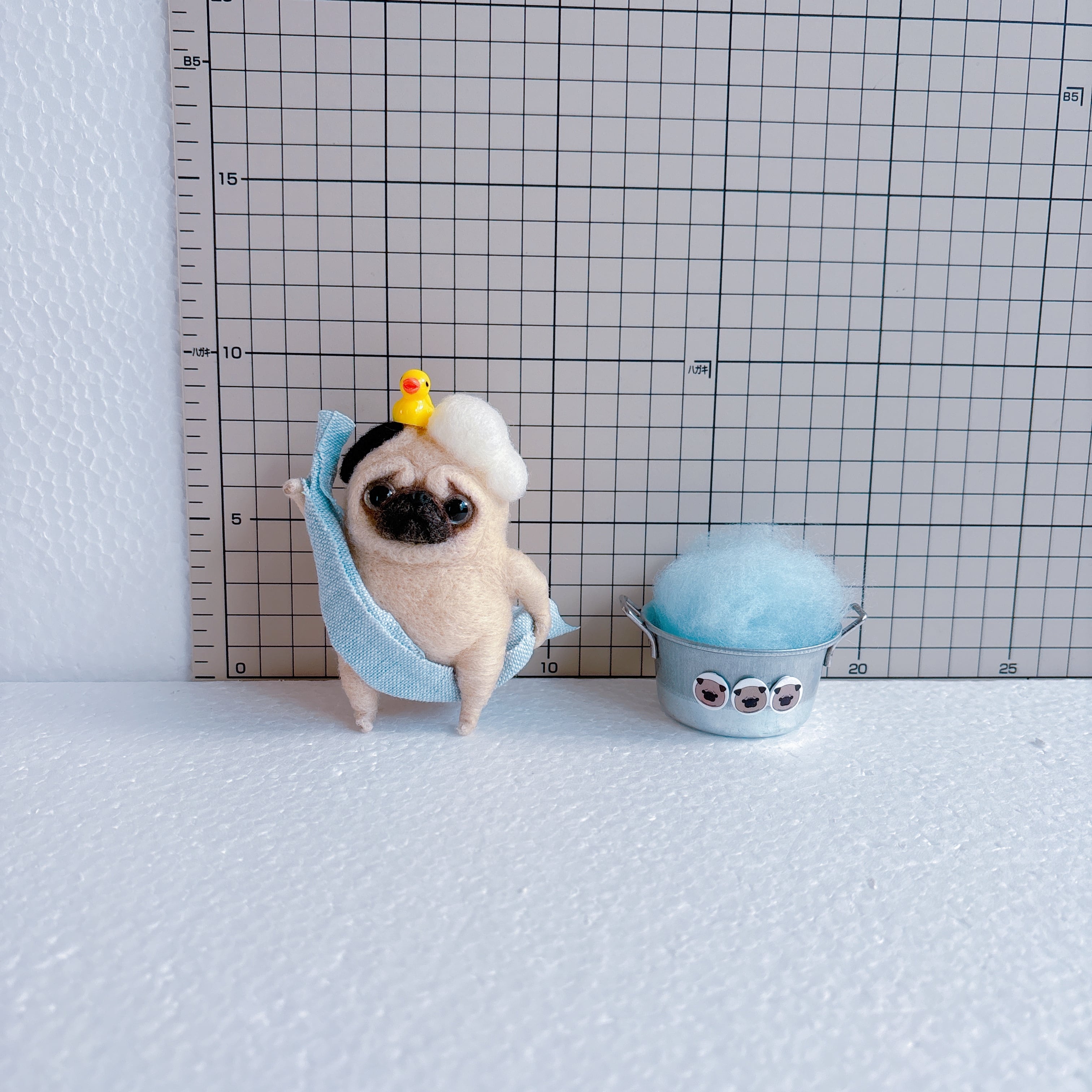 羊毛フェルトパグちゃんいい湯だなゴシゴシ