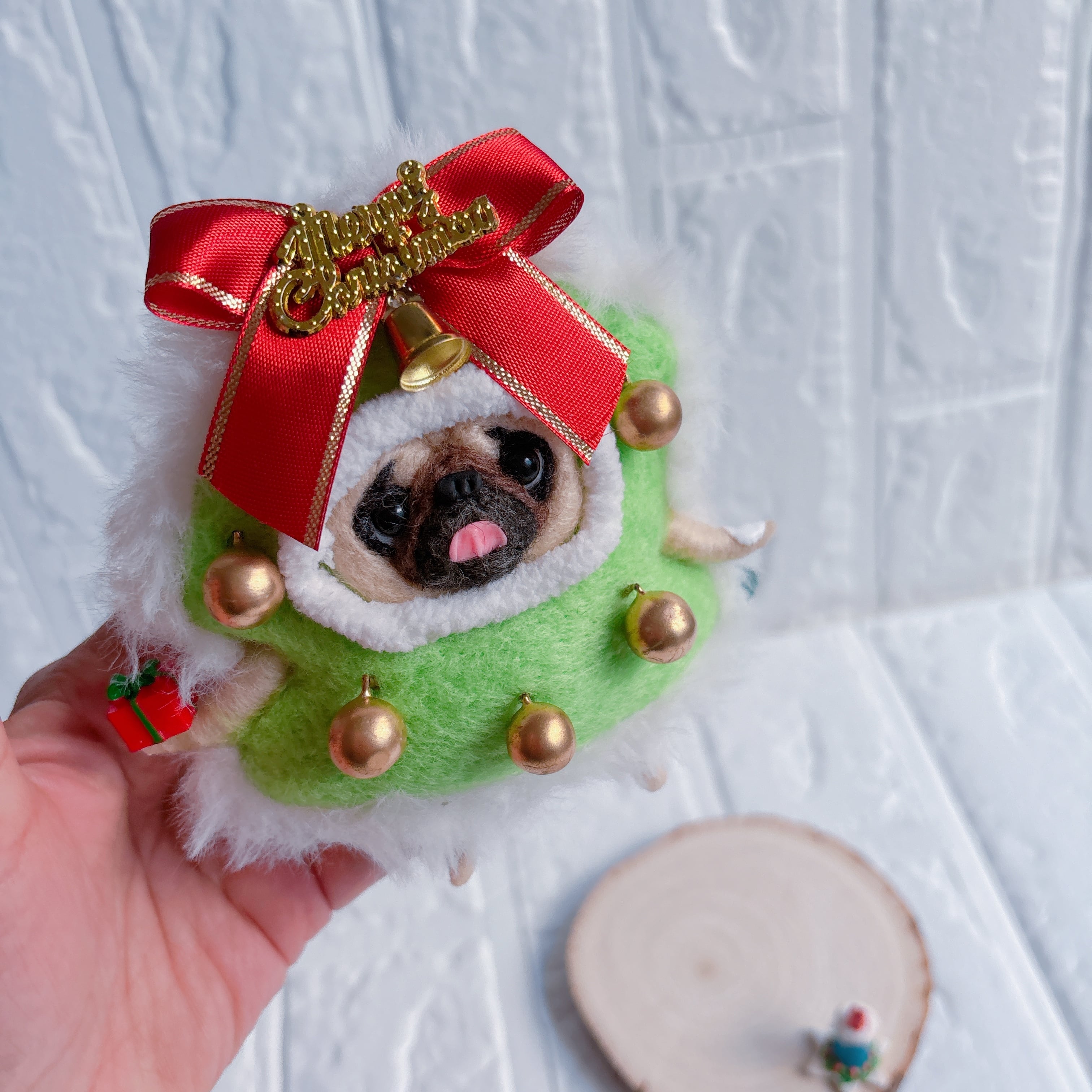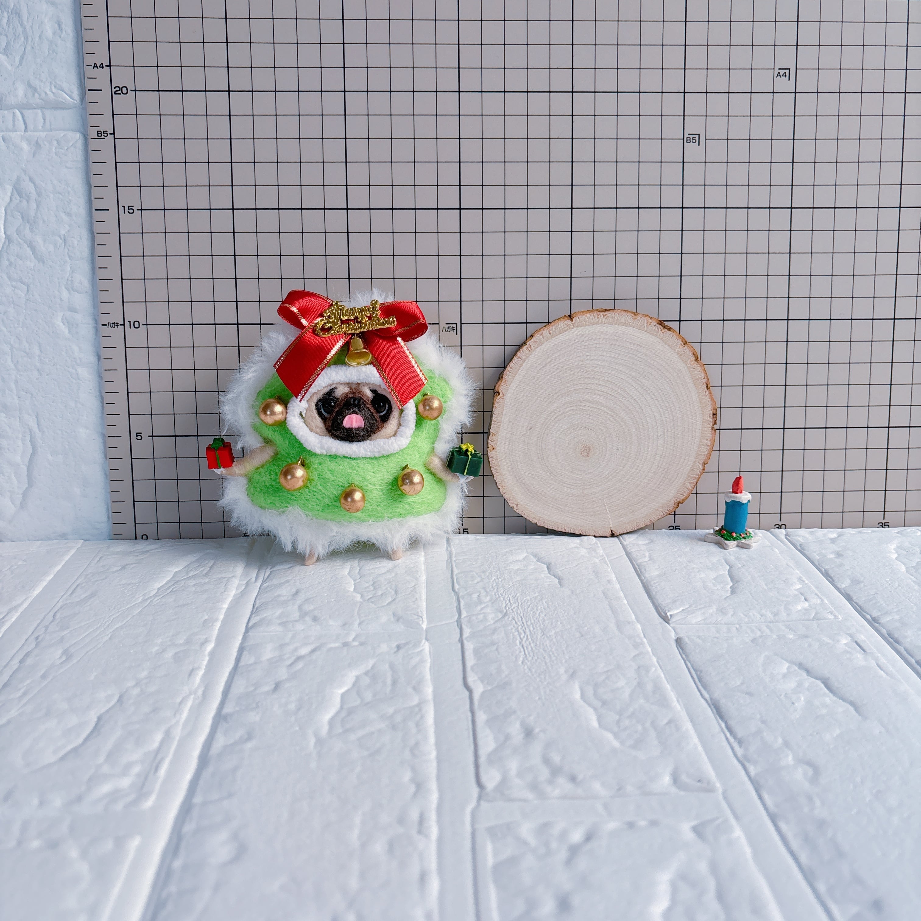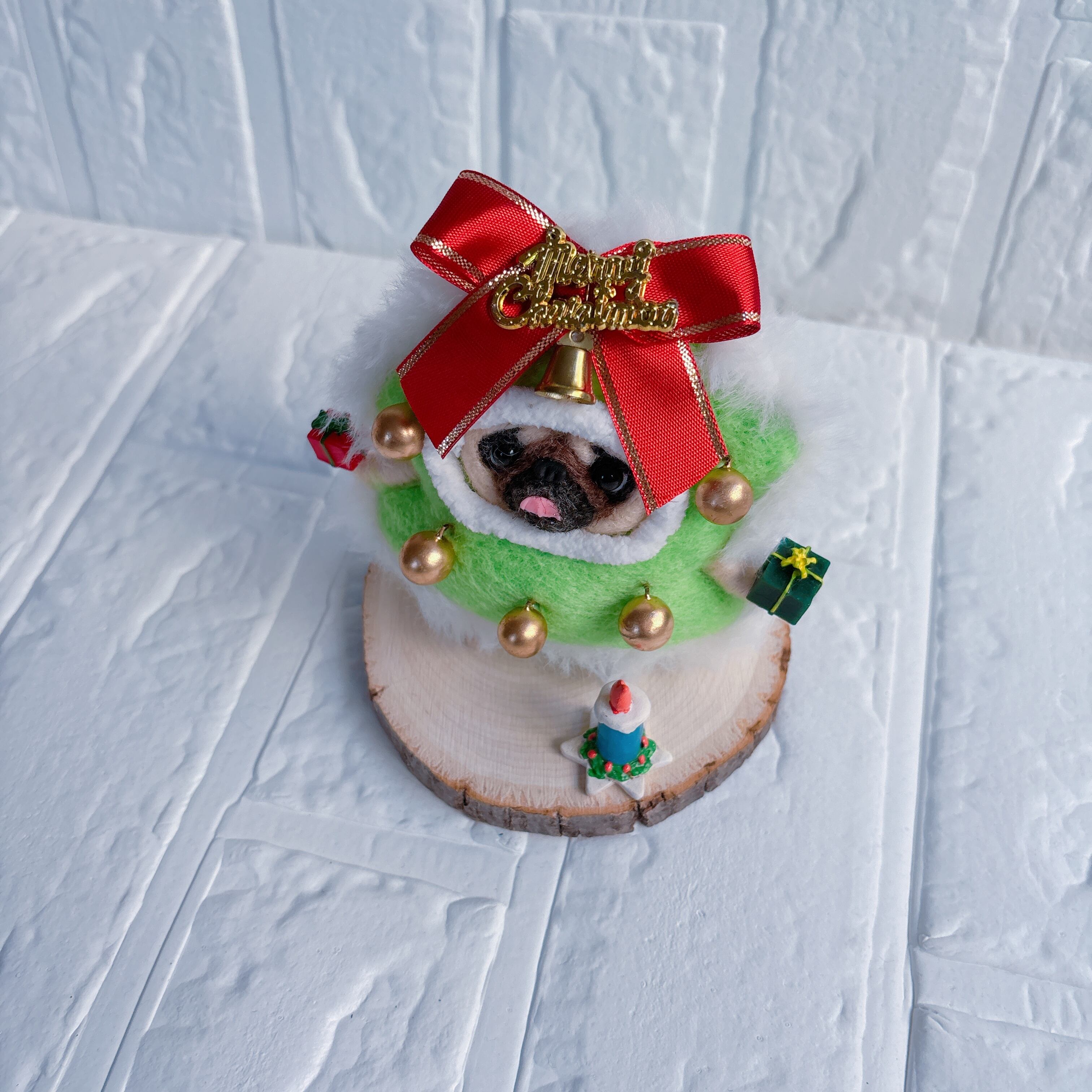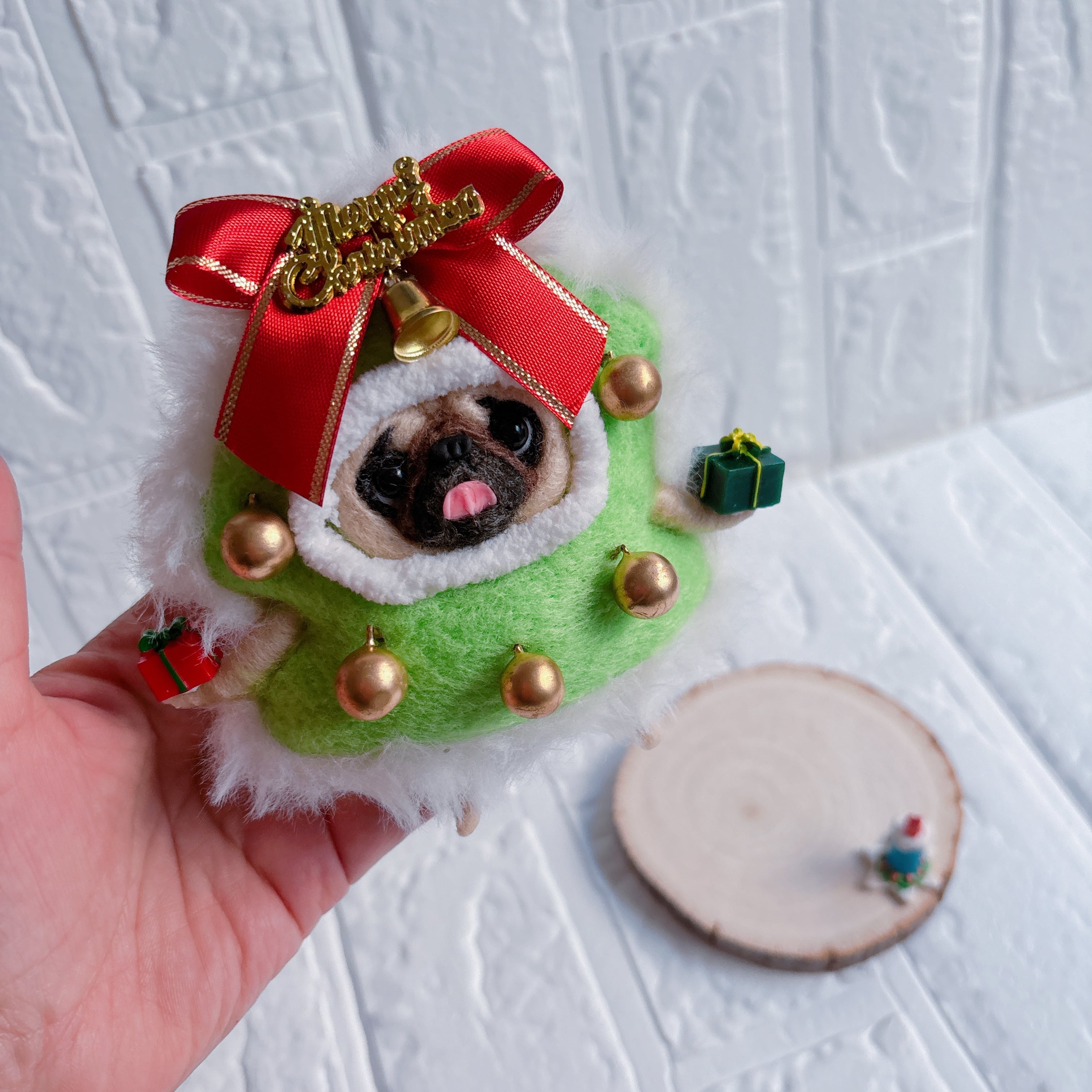 羊毛フェルトパグクリスマスツリー