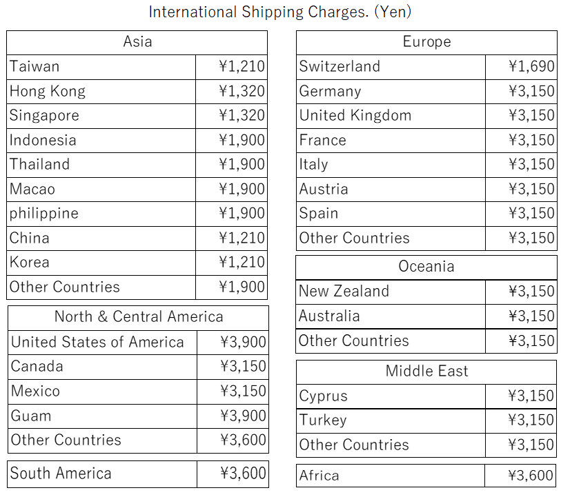 ◆海外配送 お届け先の国によって送料が異なります。小型包装物(書留扱い)またはEMSで発送します。
