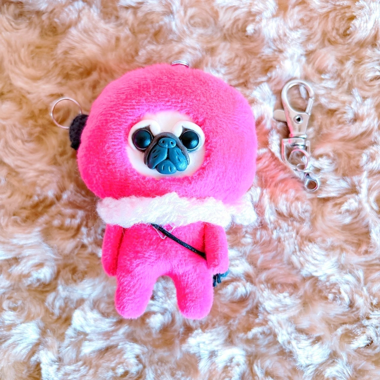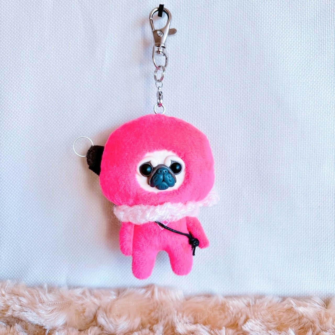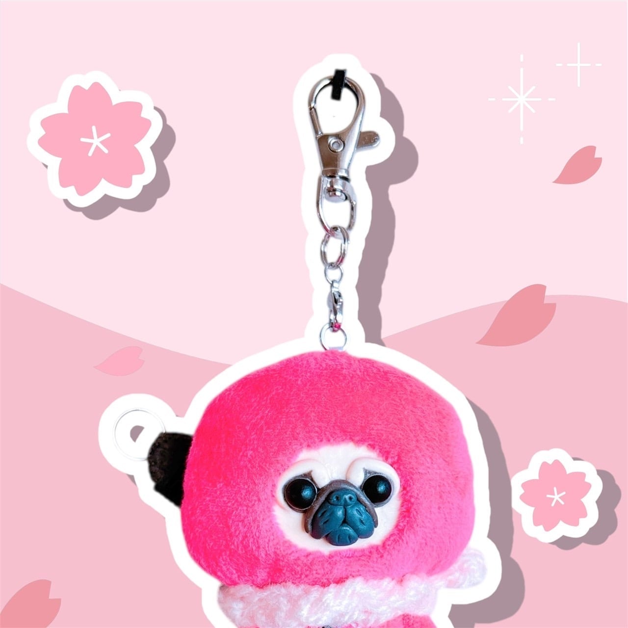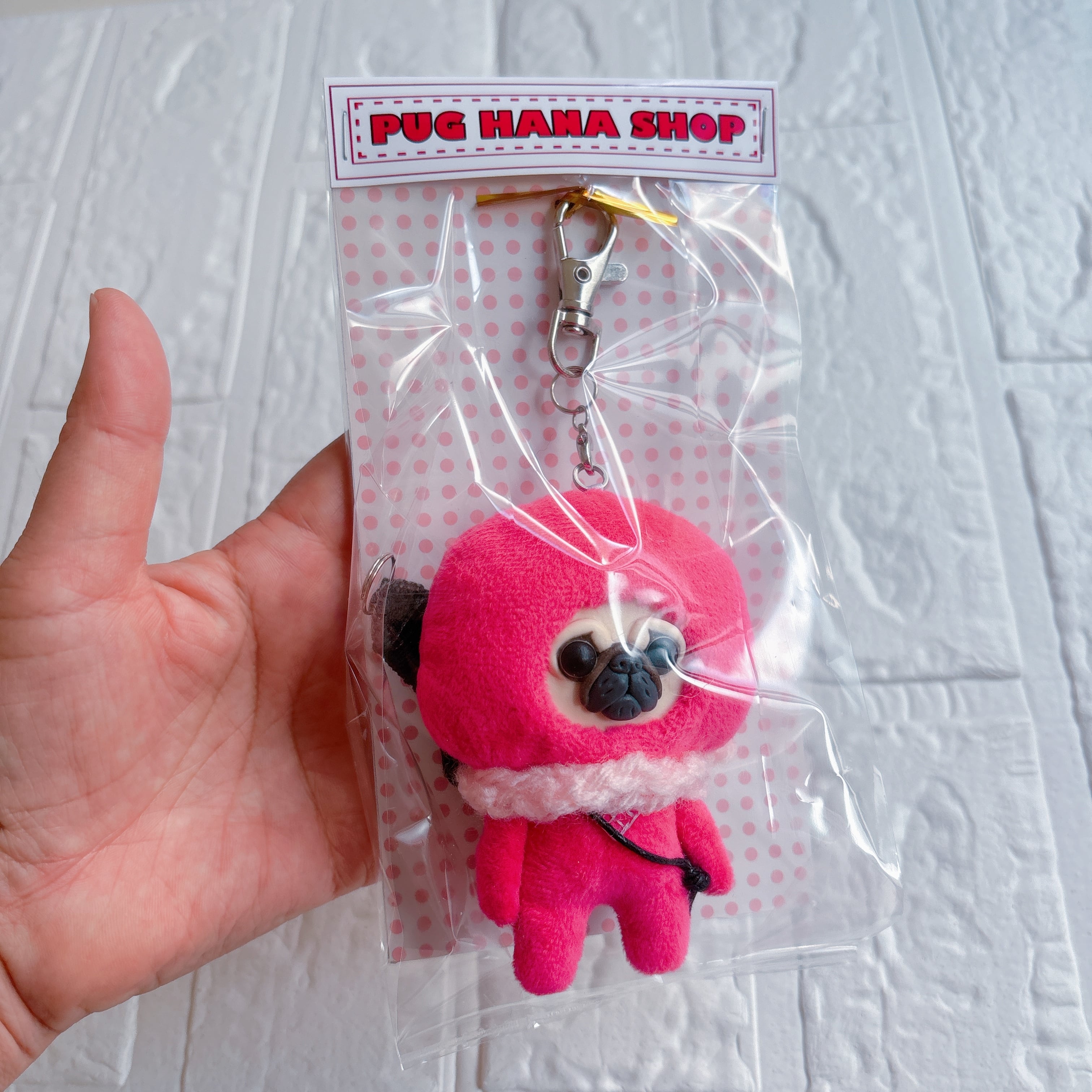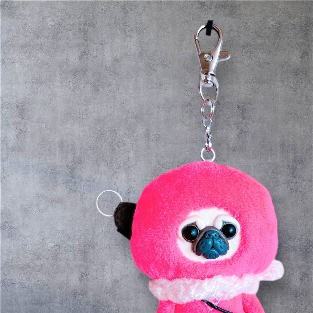 パグキーホルダーピンク忍者