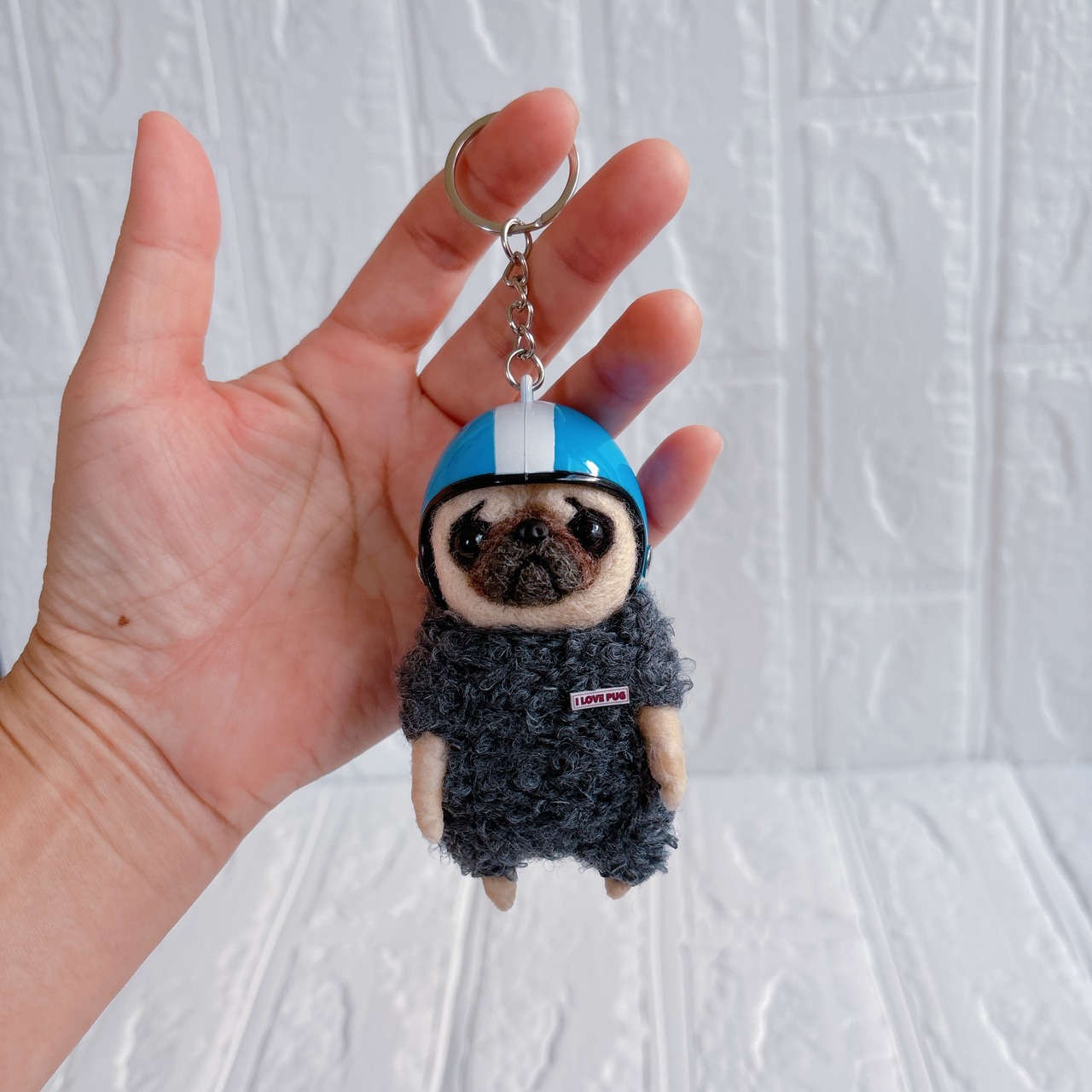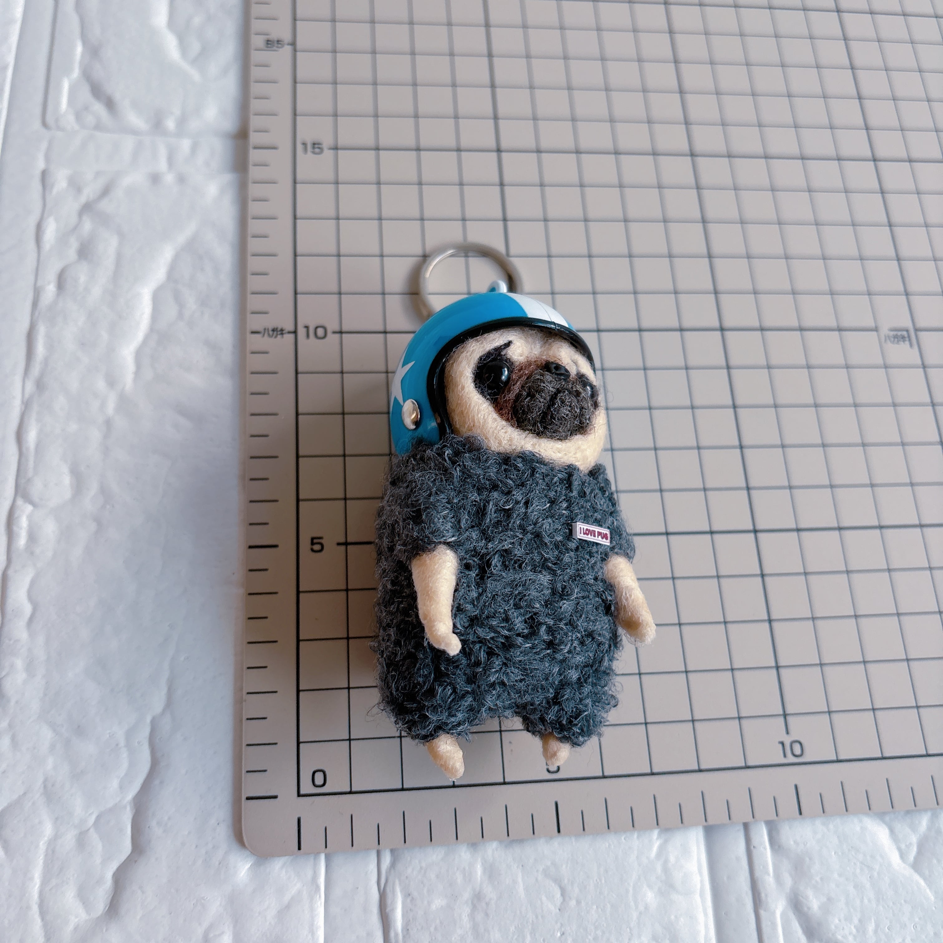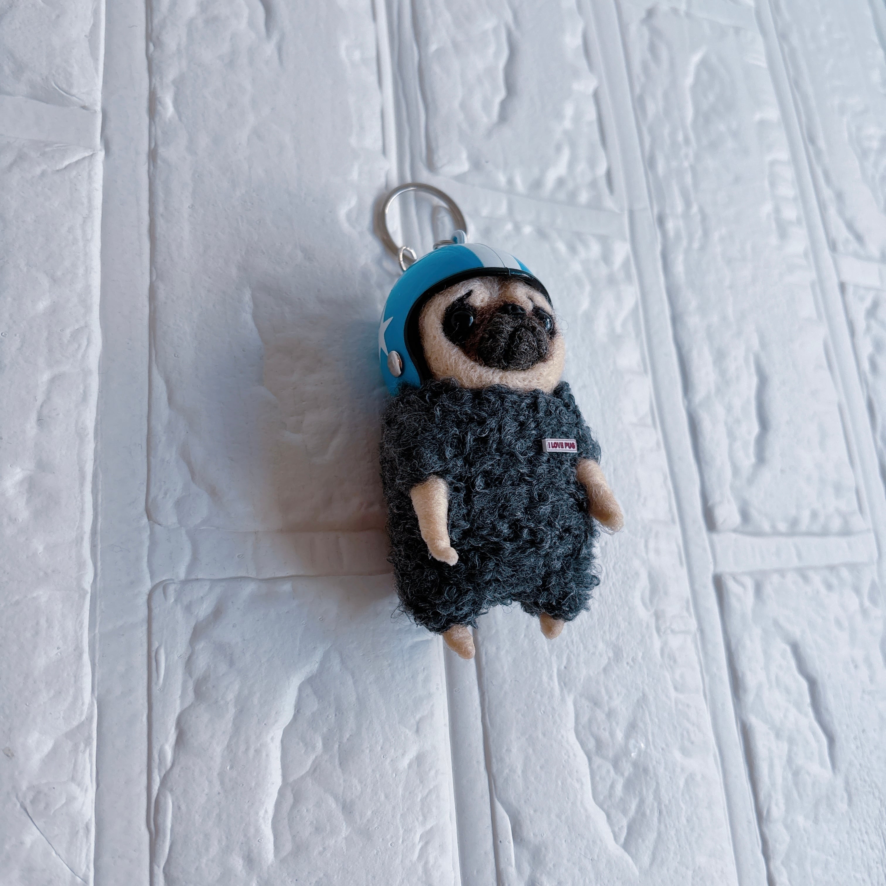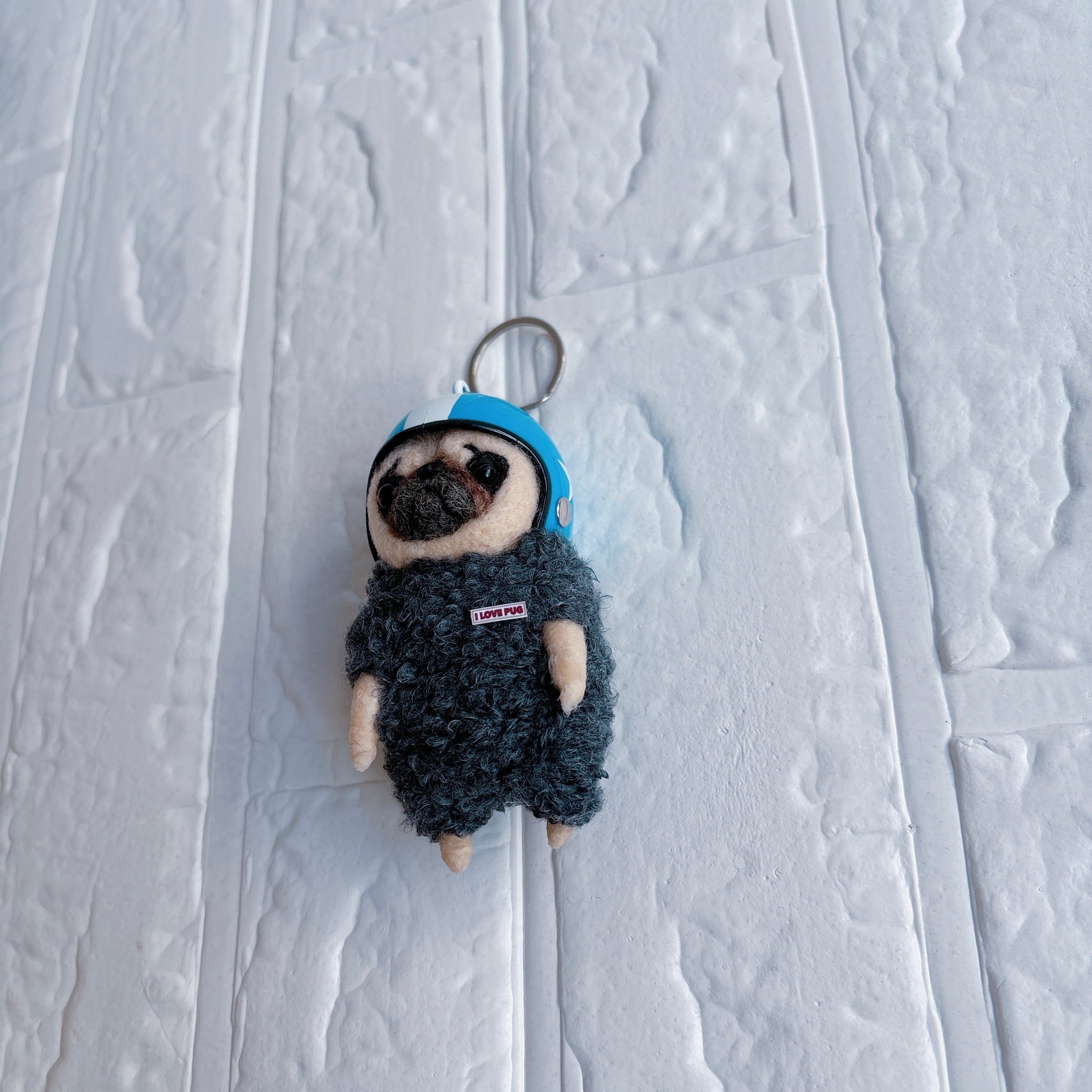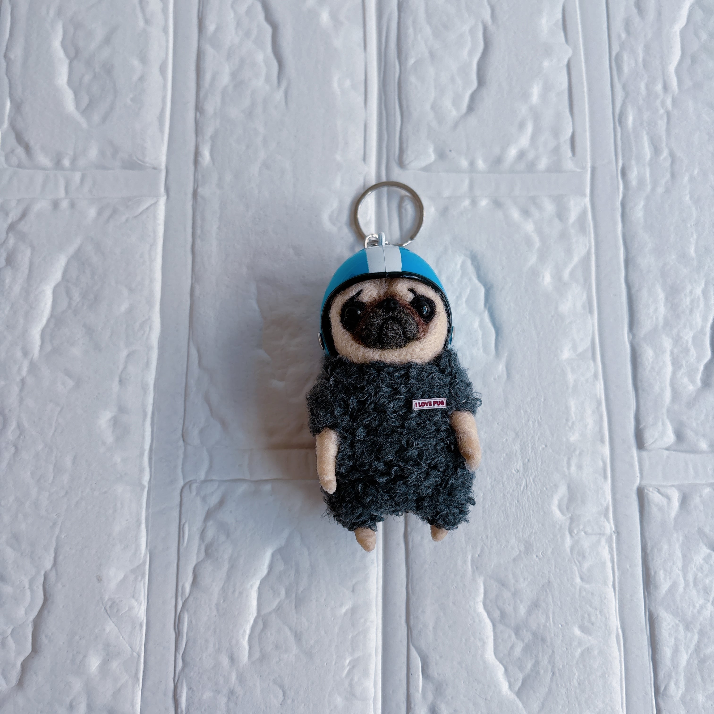 羊毛フェルトパグキーホルダー青