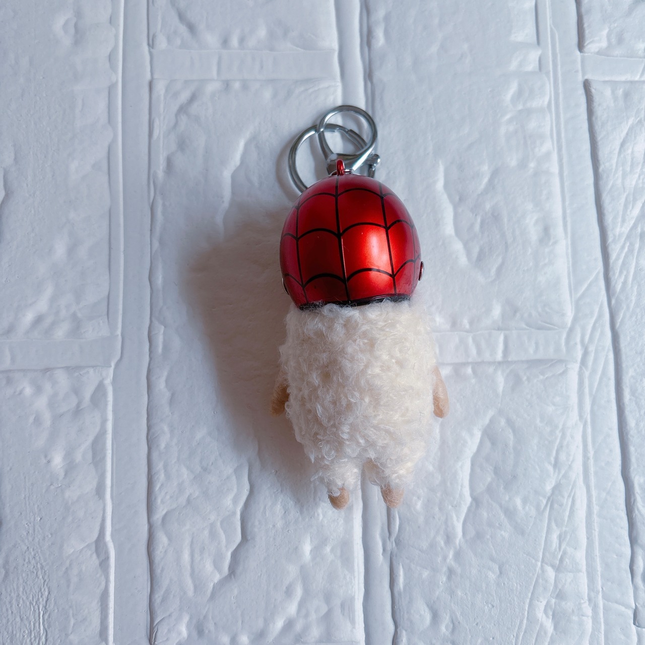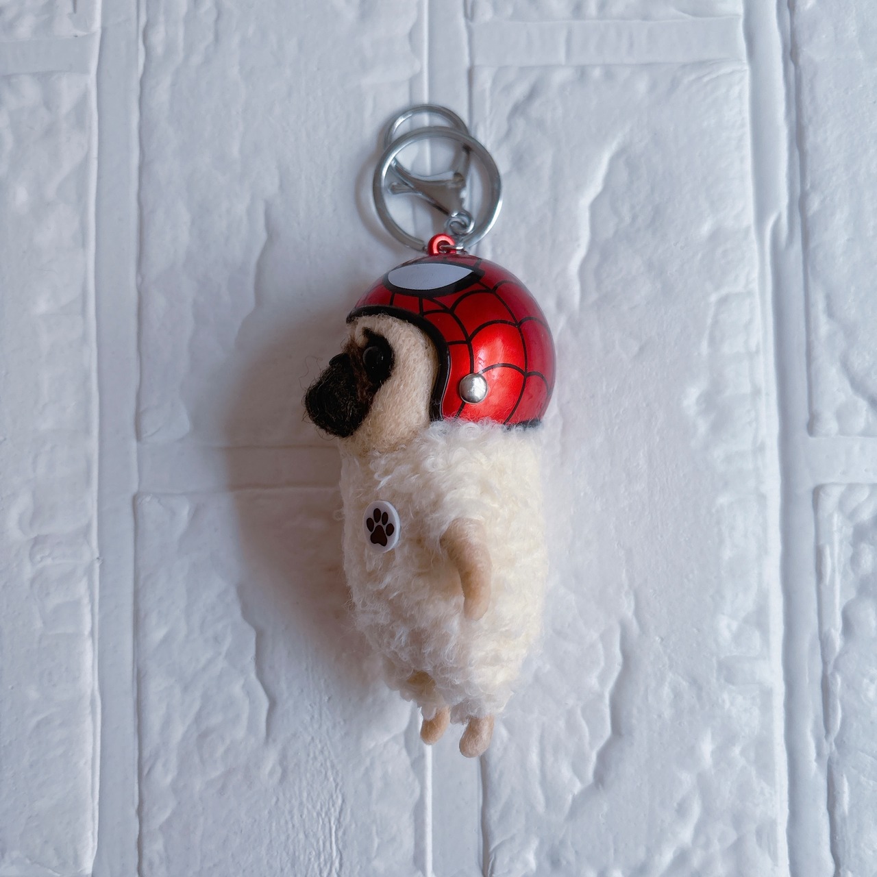 羊毛フェルトパグキーホルダー赤クモ