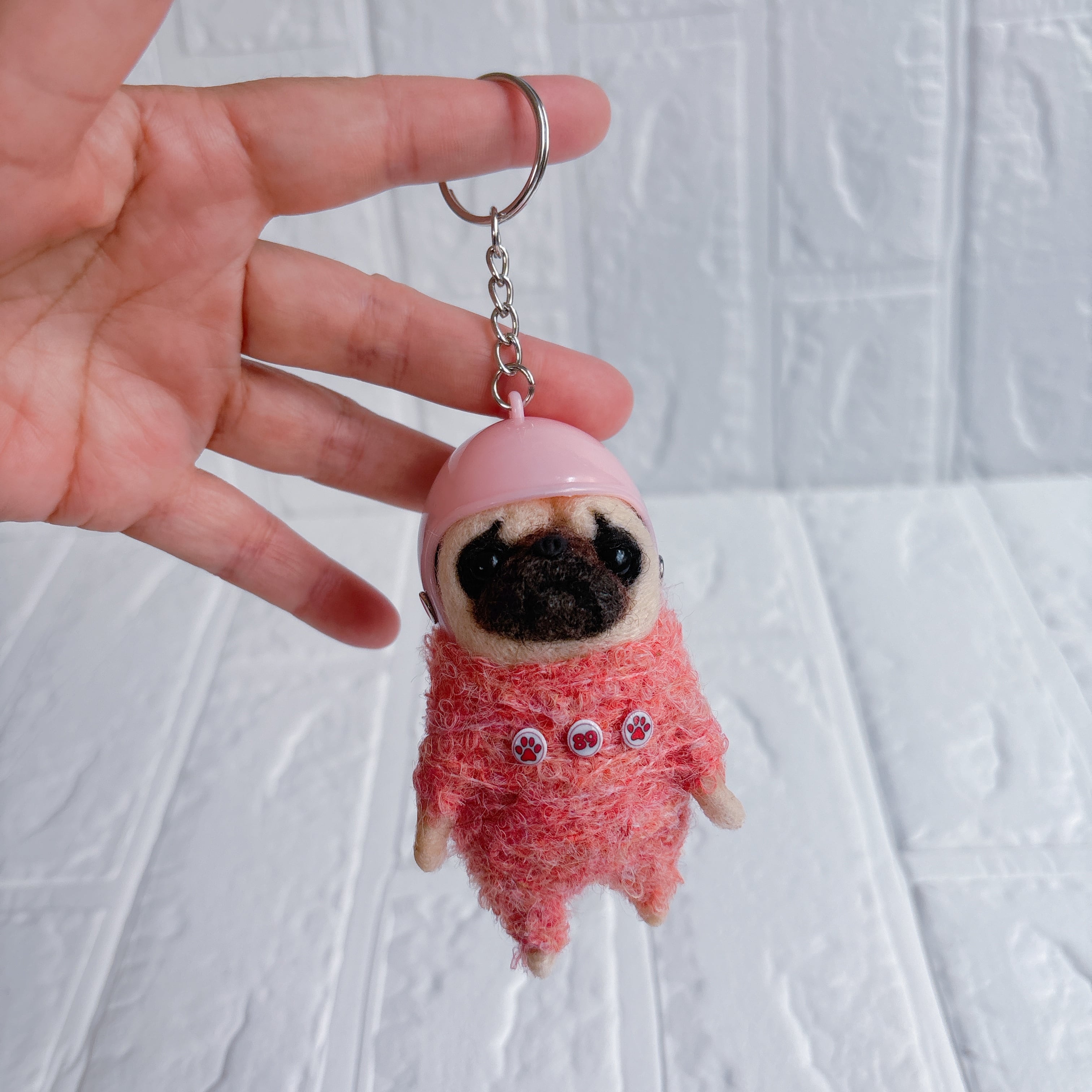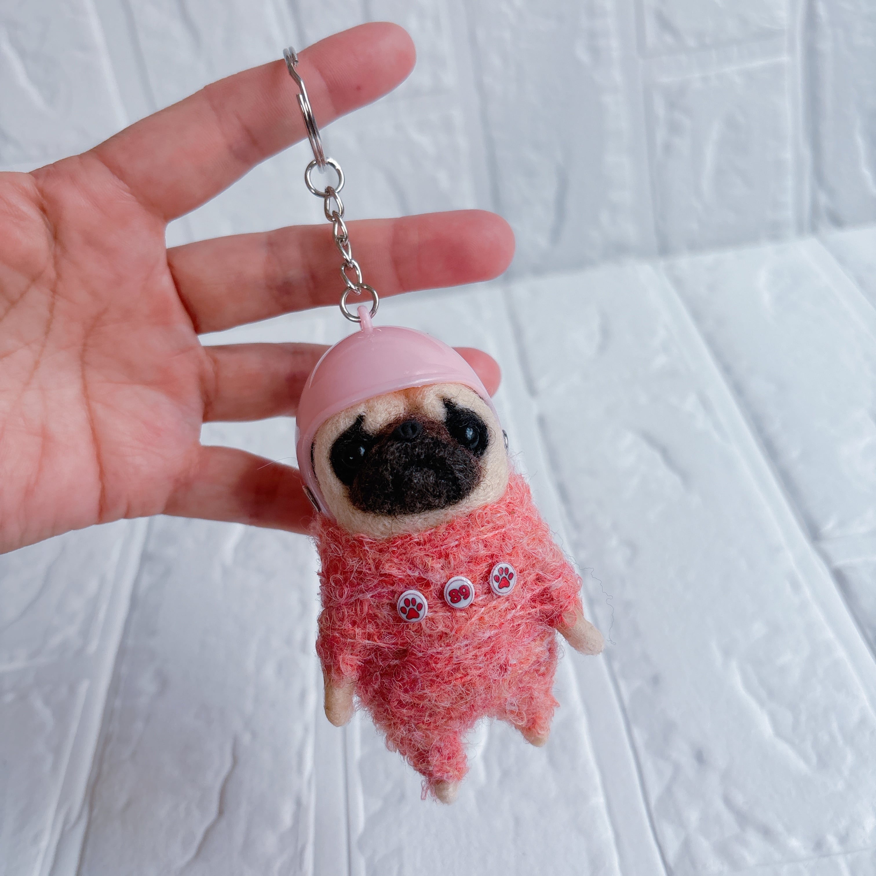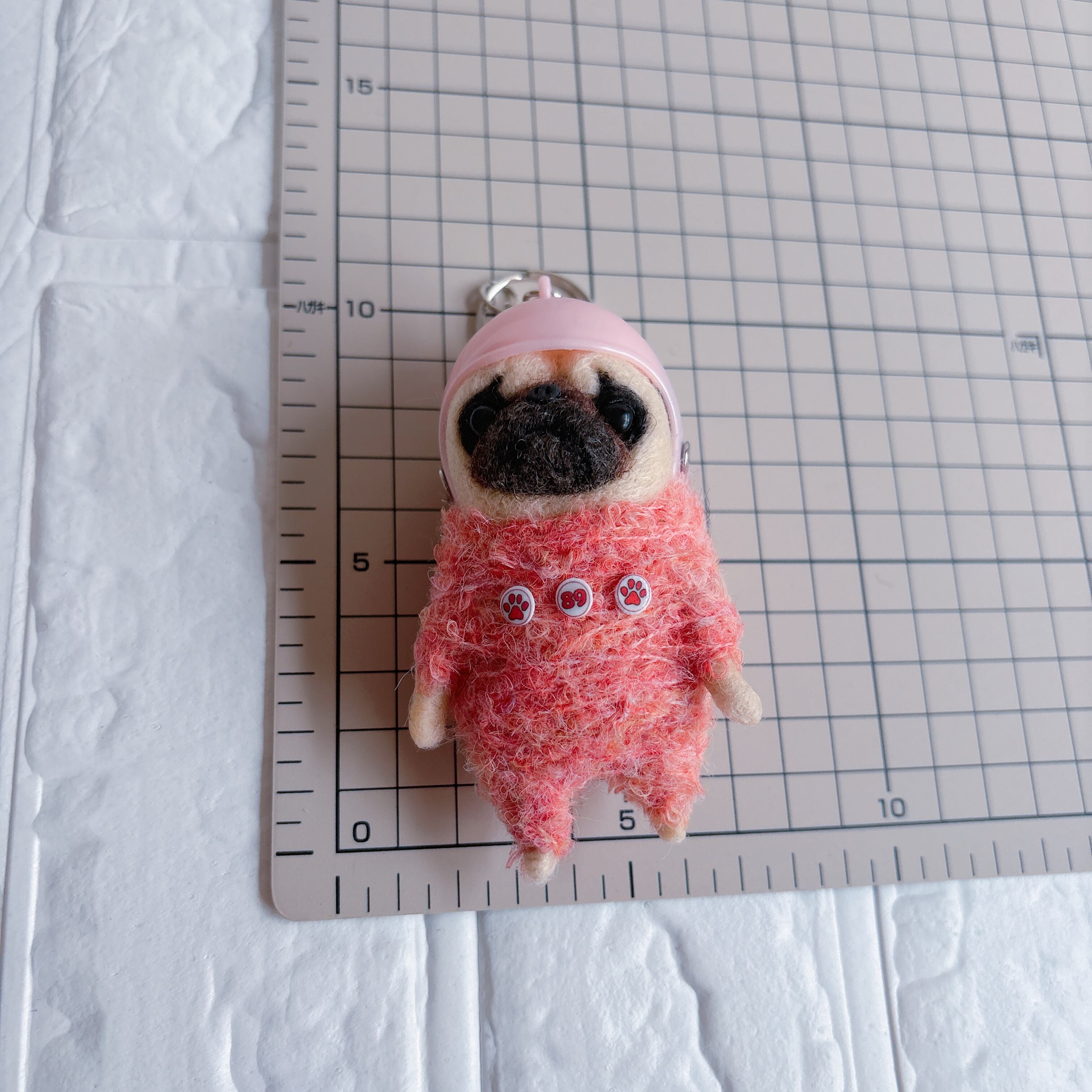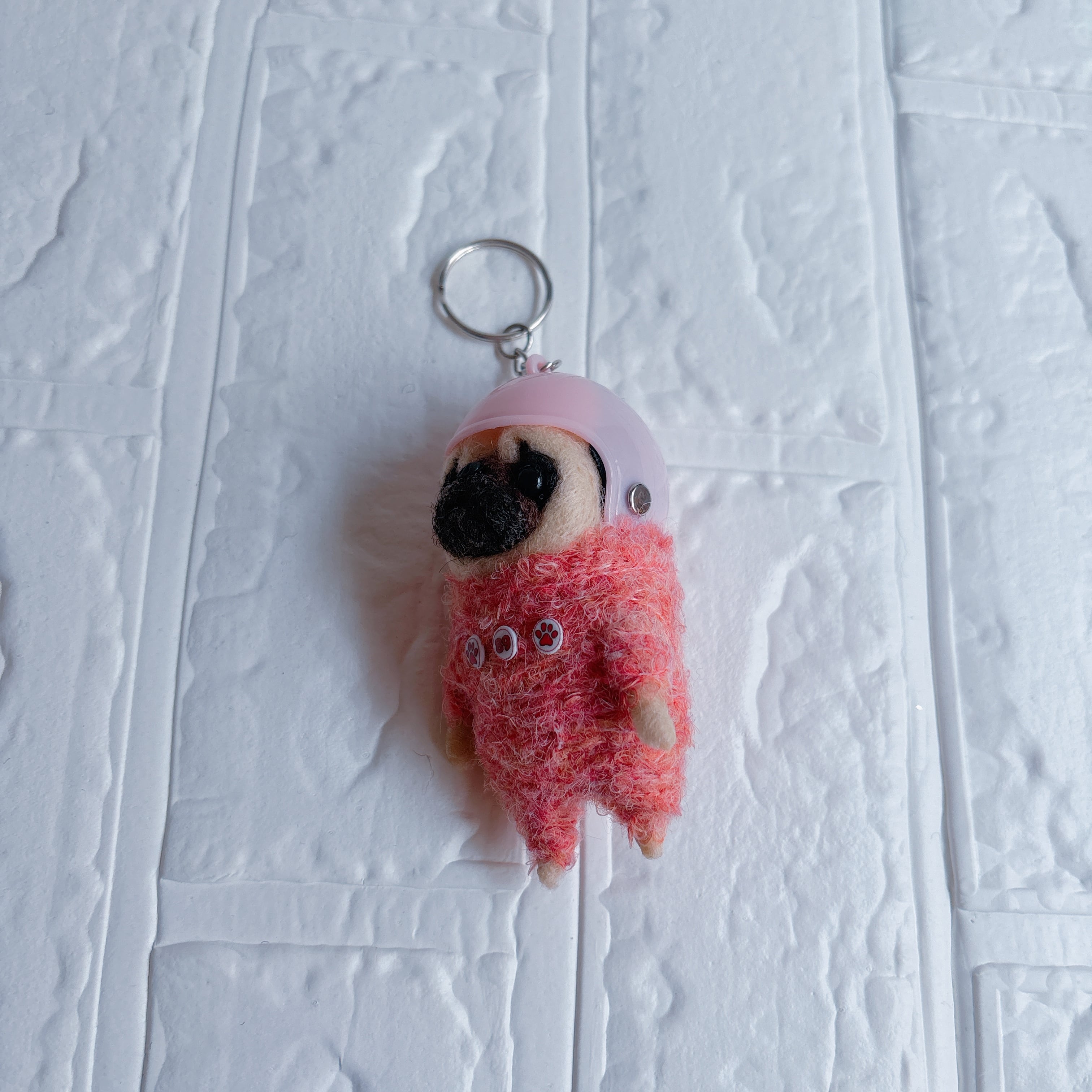 羊毛フェルトパグキーホルダーピンク