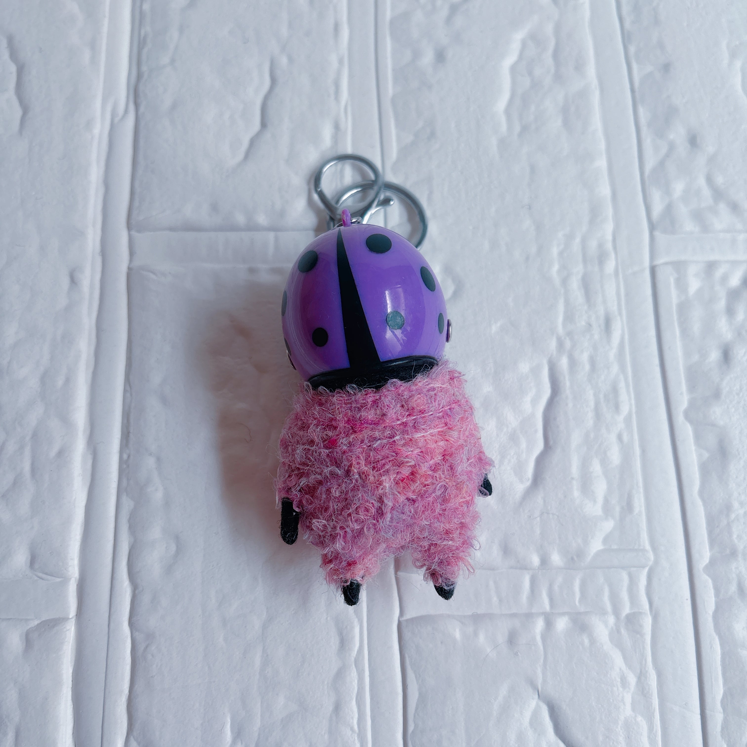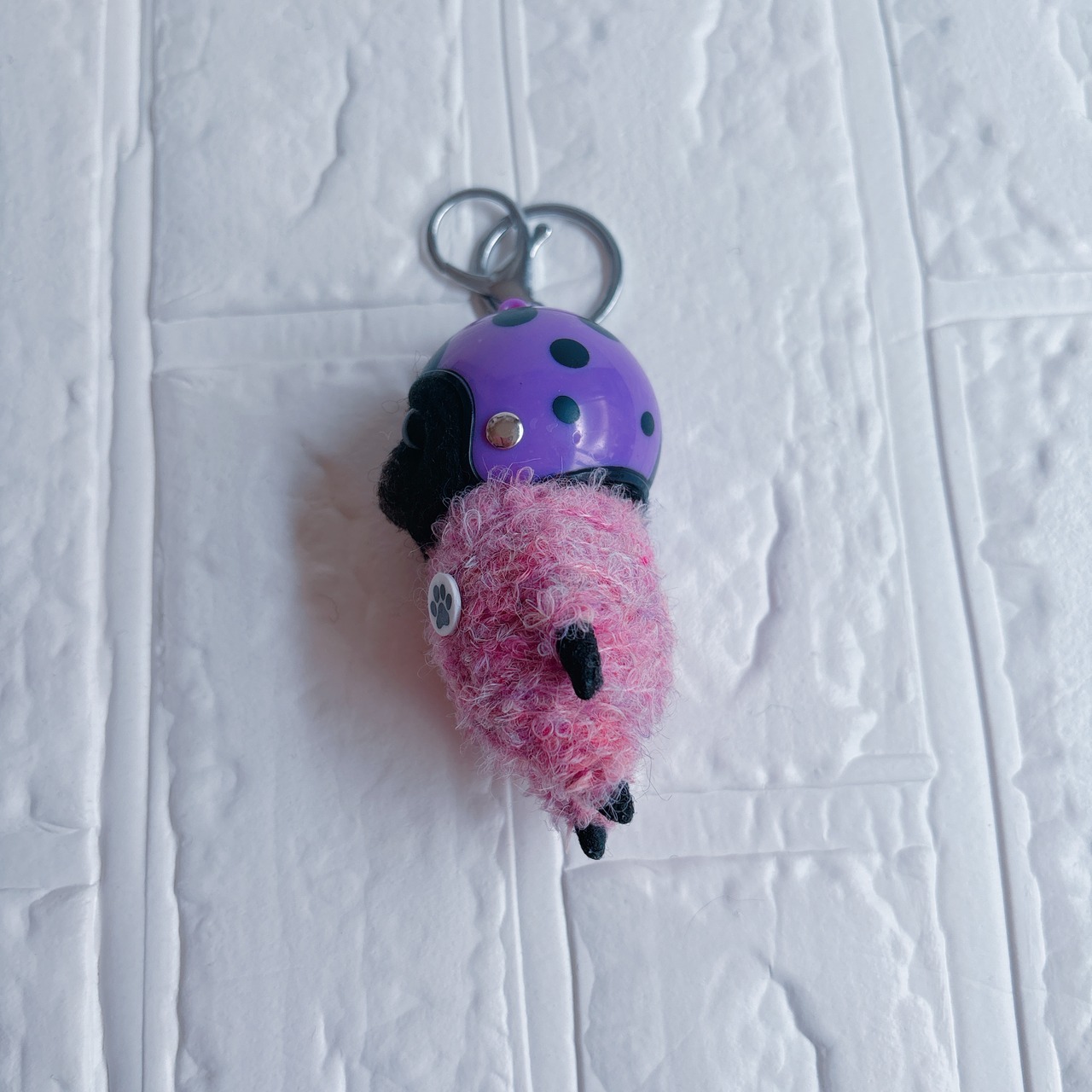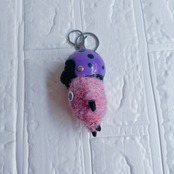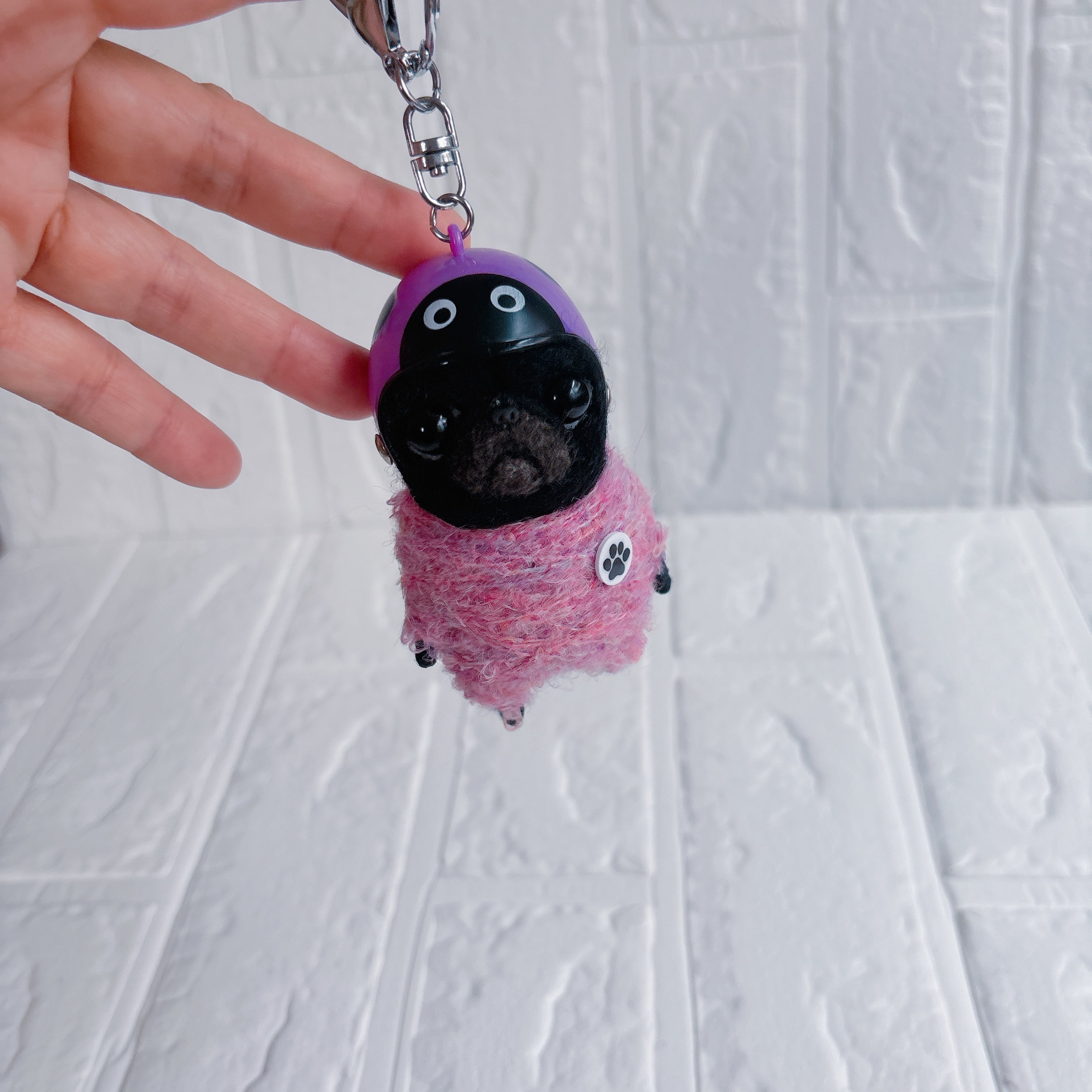 羊毛フェルト黒パグキーホルダーてんとう虫