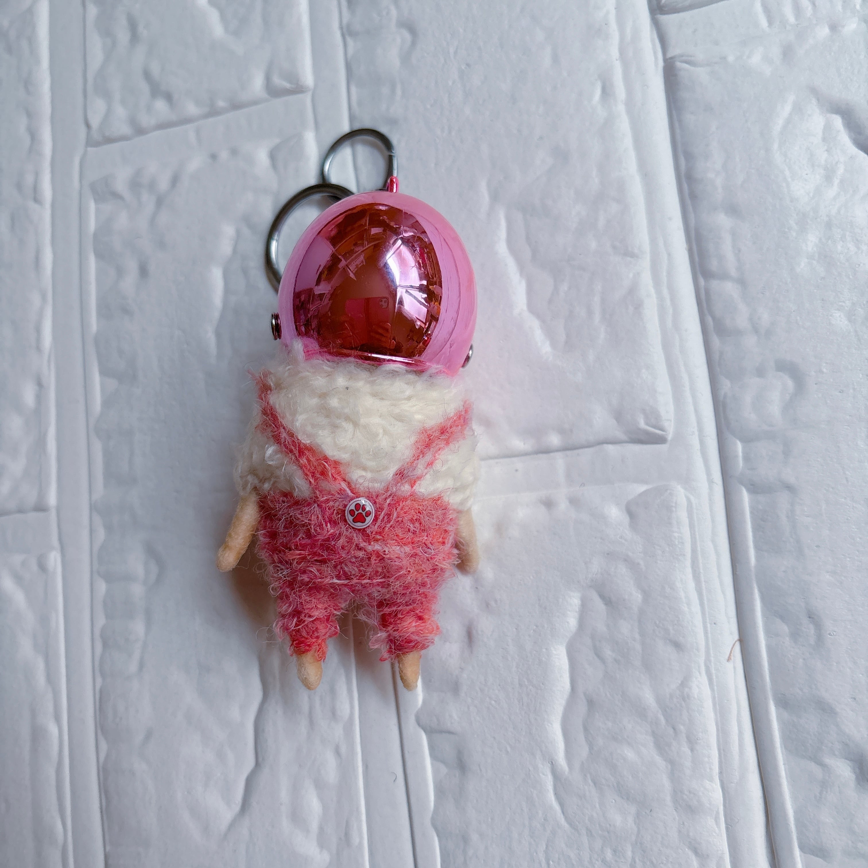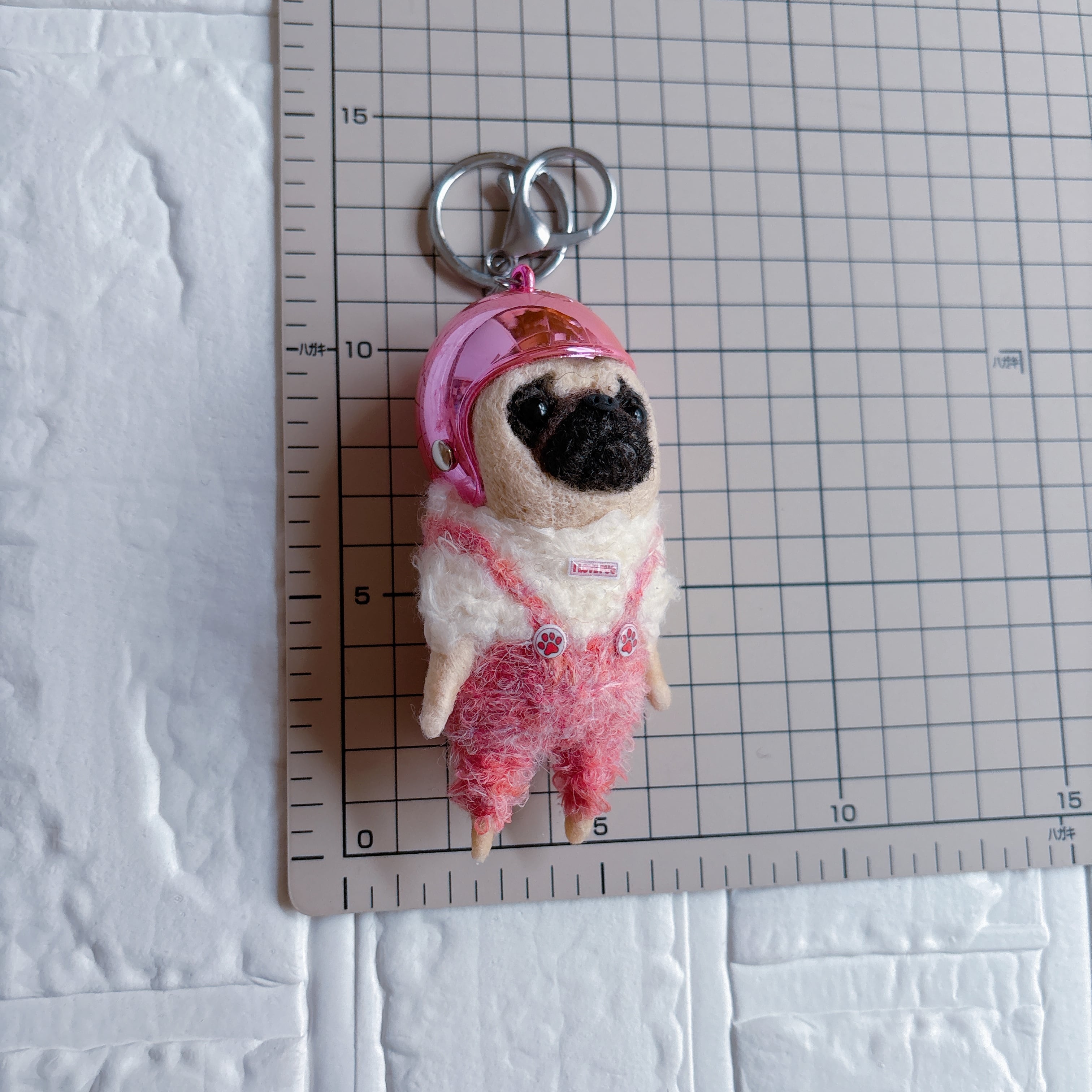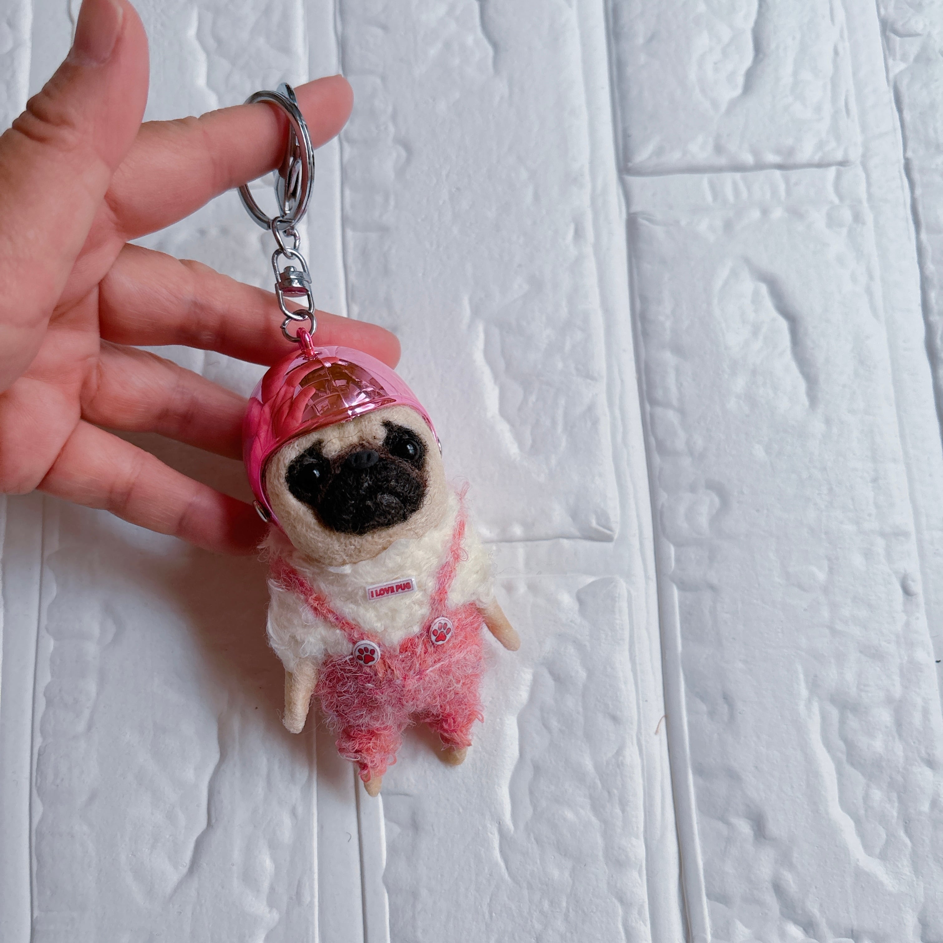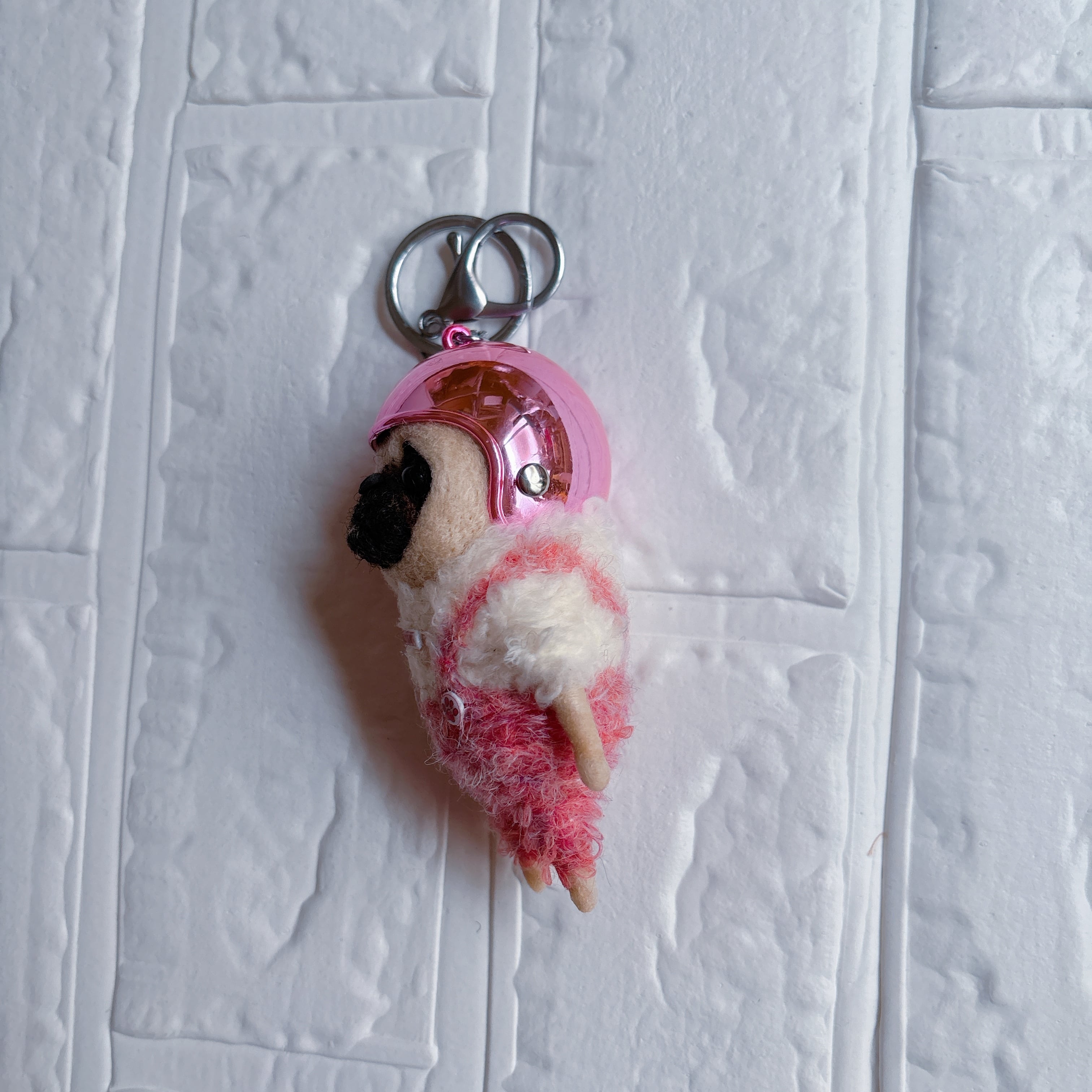 羊毛フェルトパグキーホルダーピンク