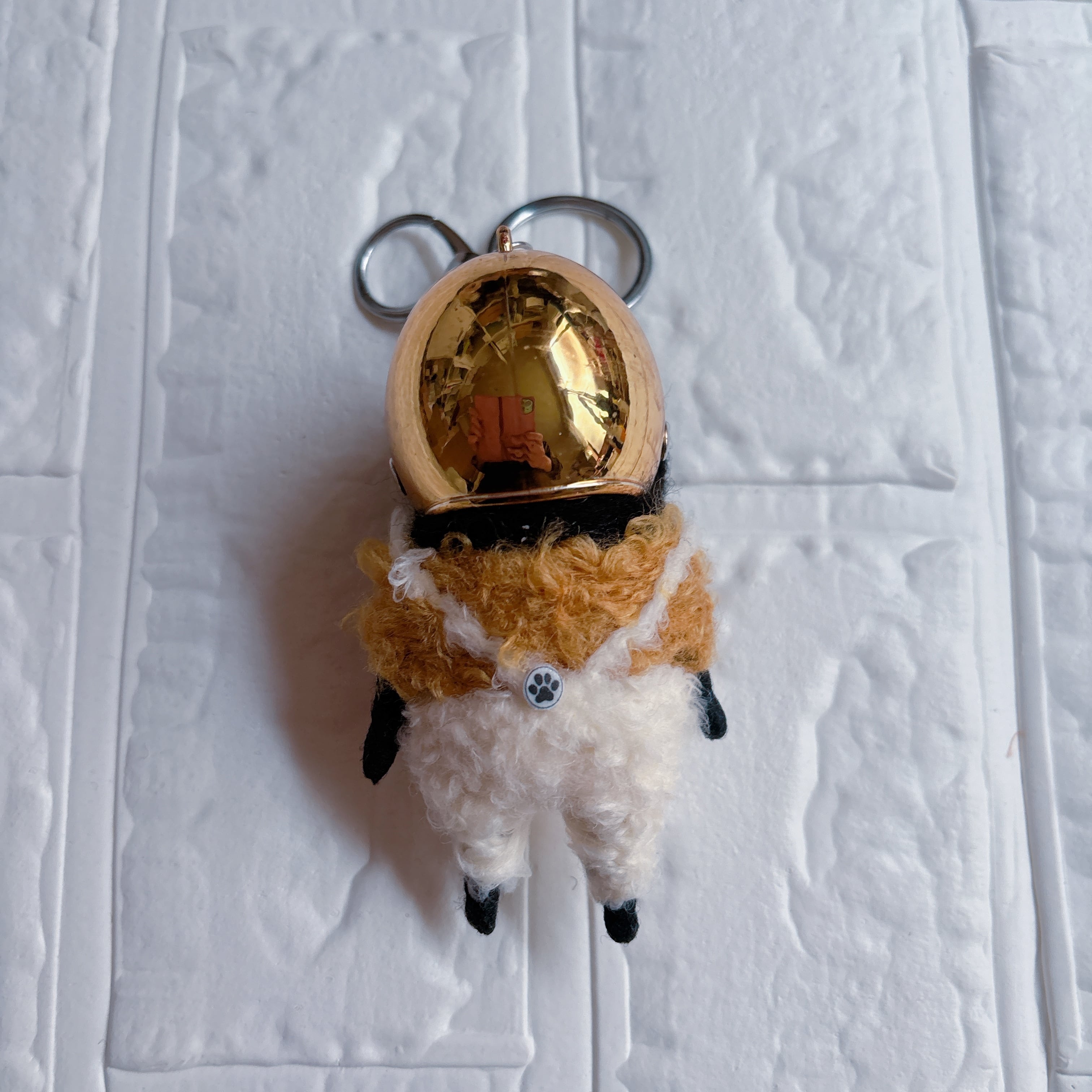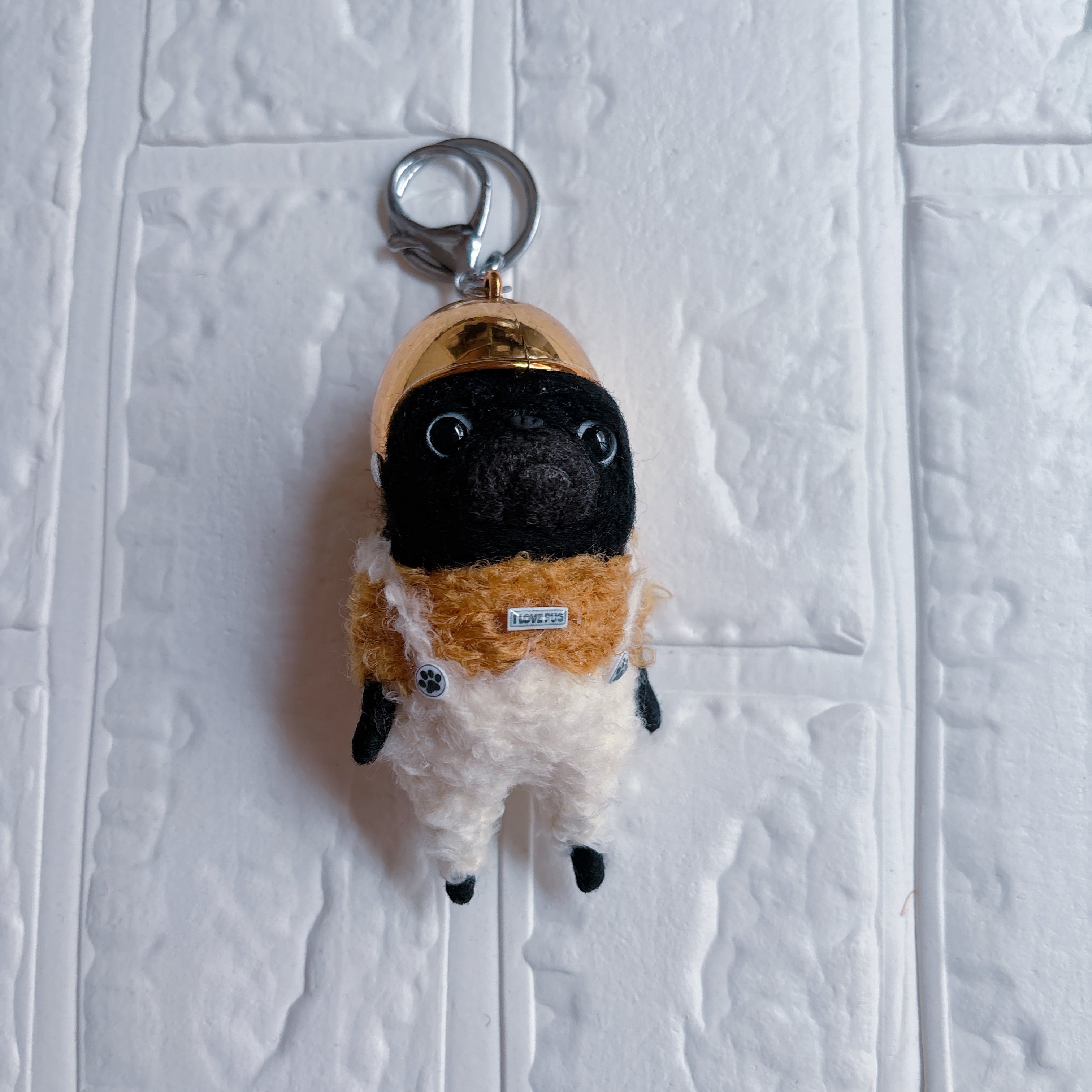 羊毛フェルト黒パグキーホルダーゴールド