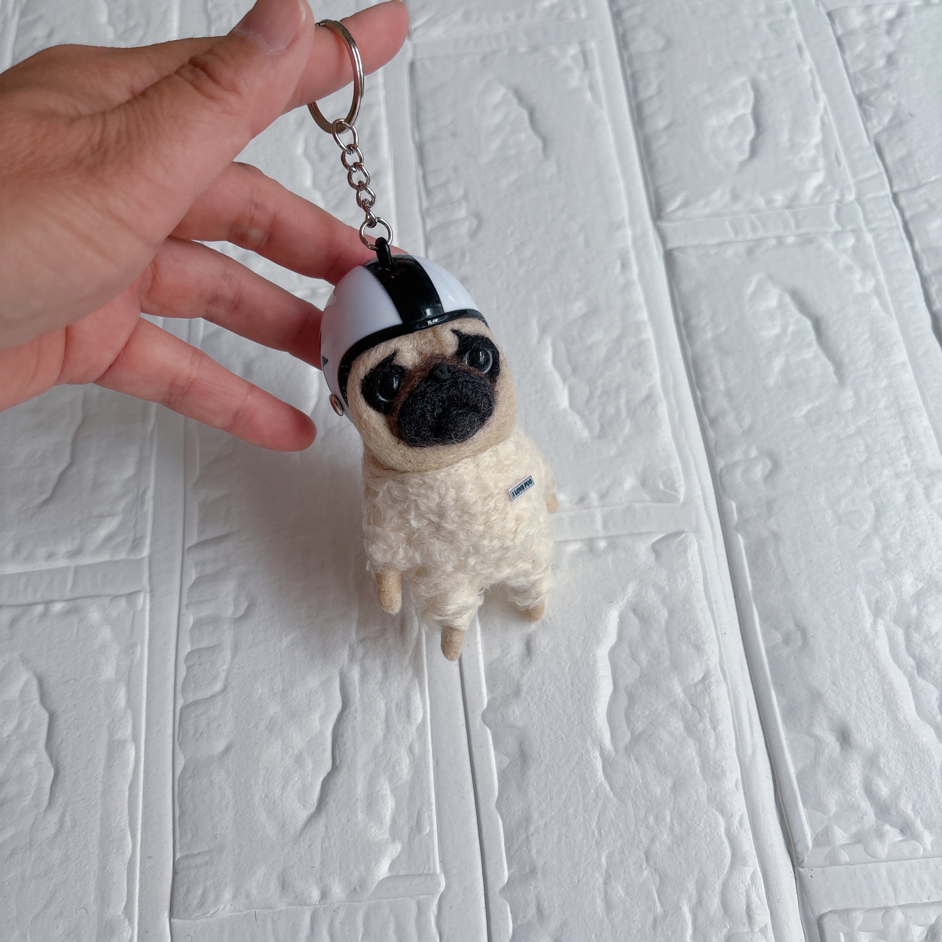羊毛フェルトパグキーホルダー白