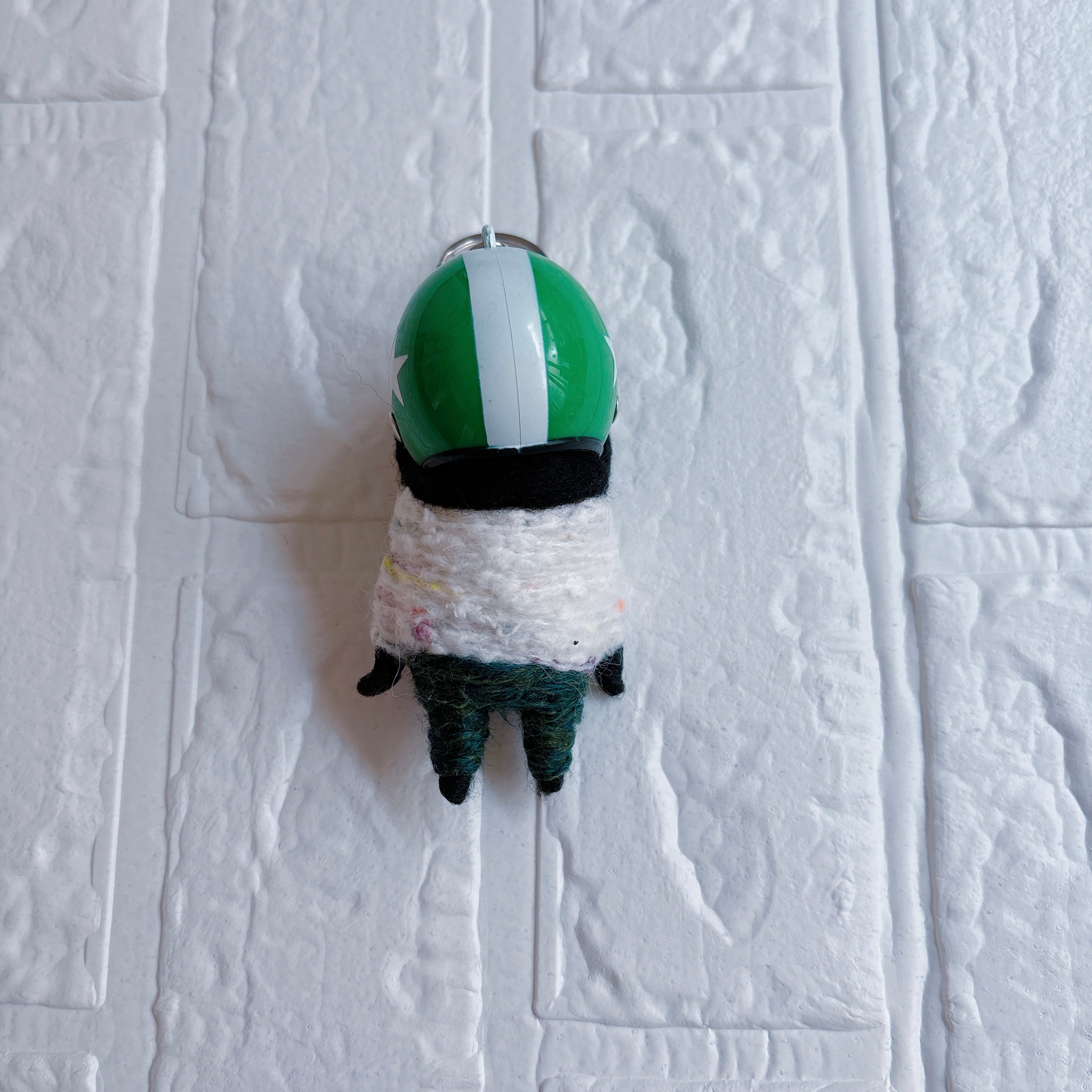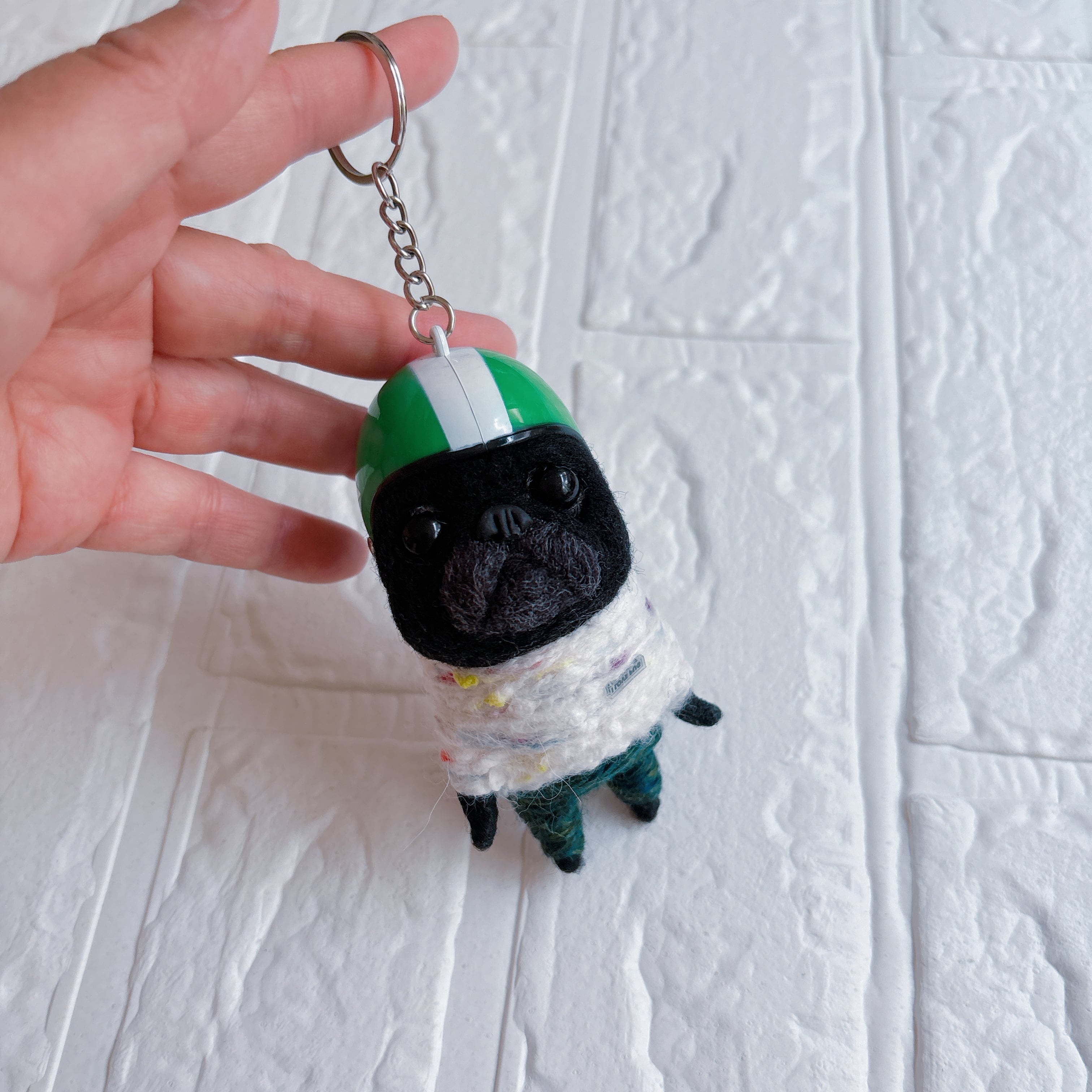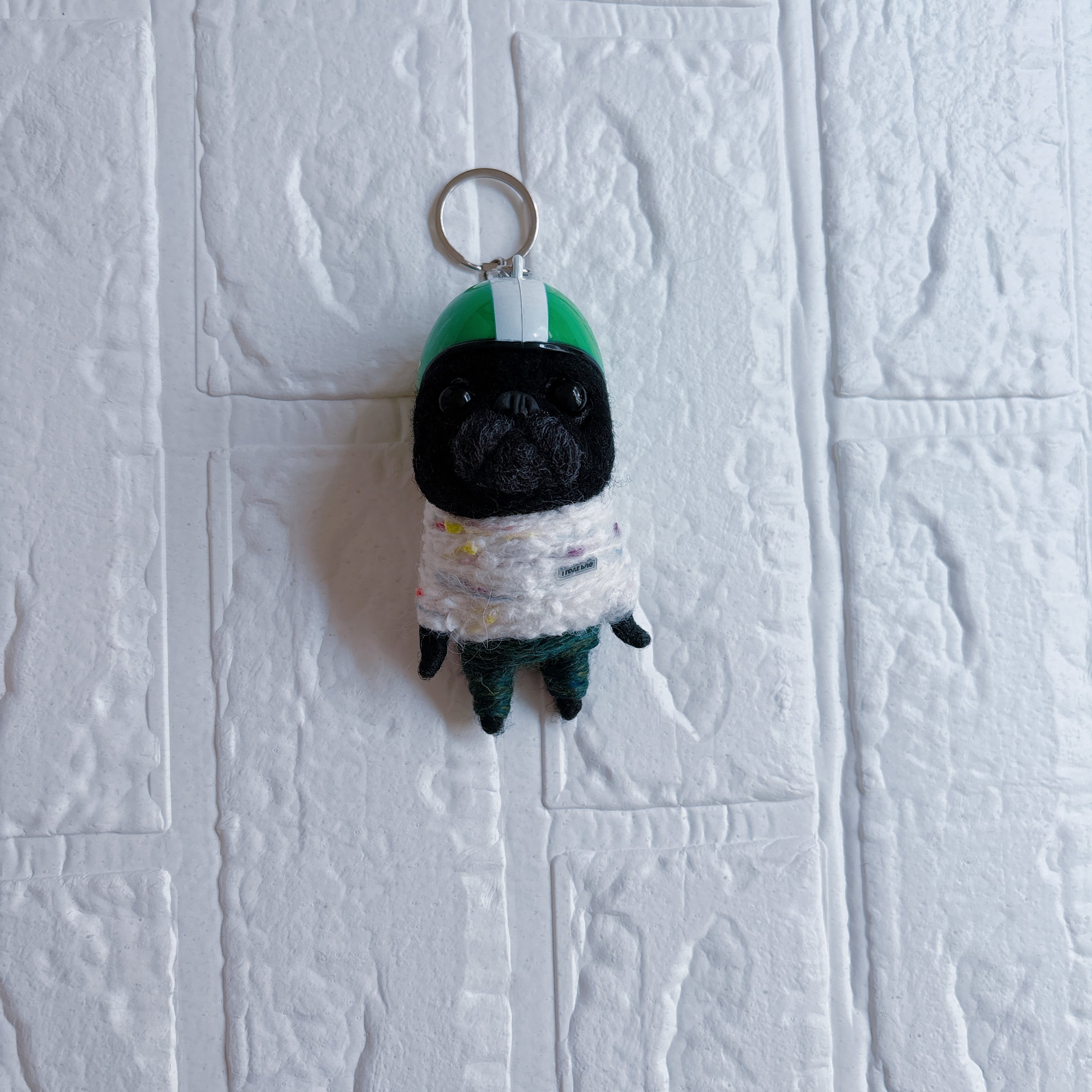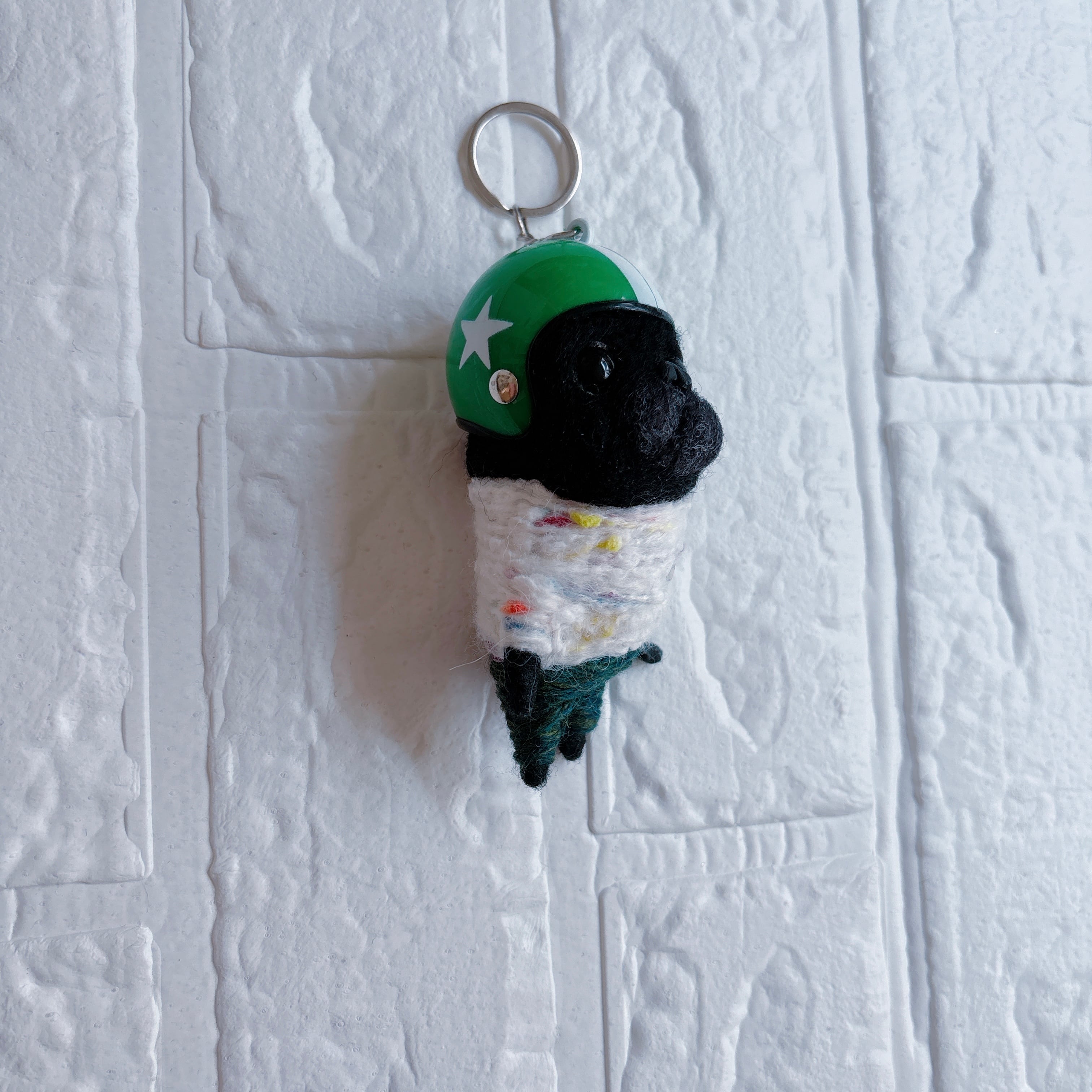 羊毛フェルト黒パグキーホルダー緑