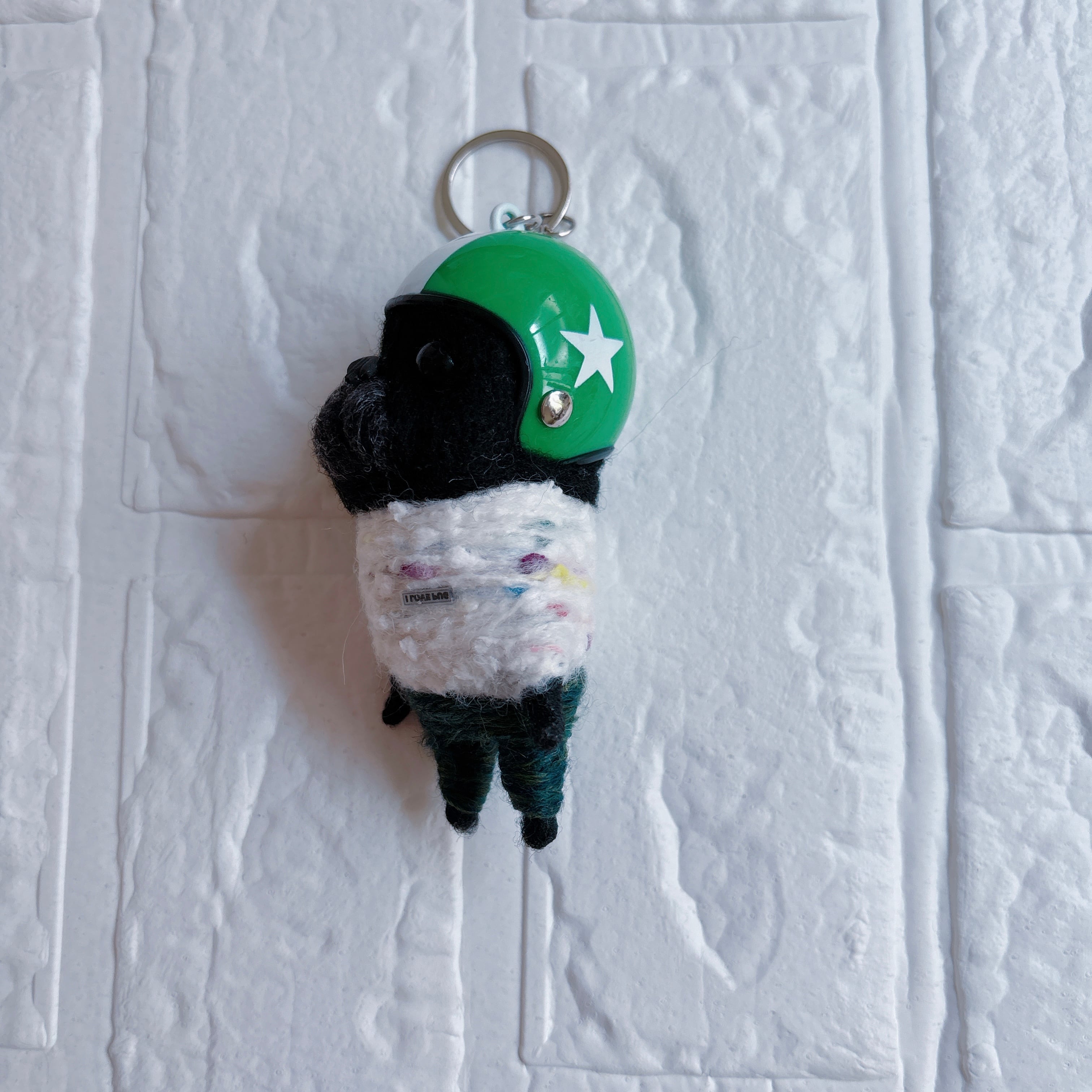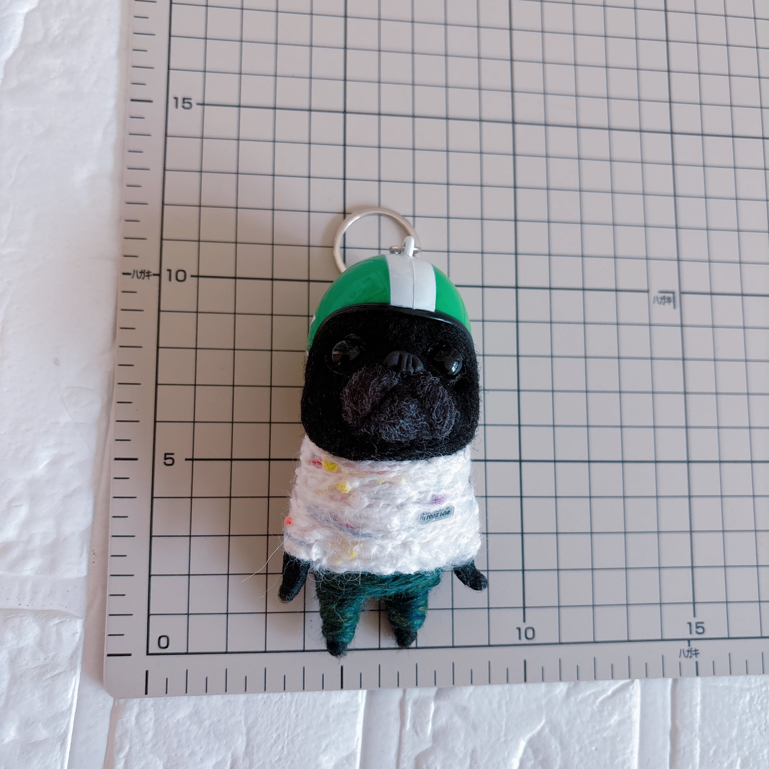 黒パグキーホルダー緑ヘルメット