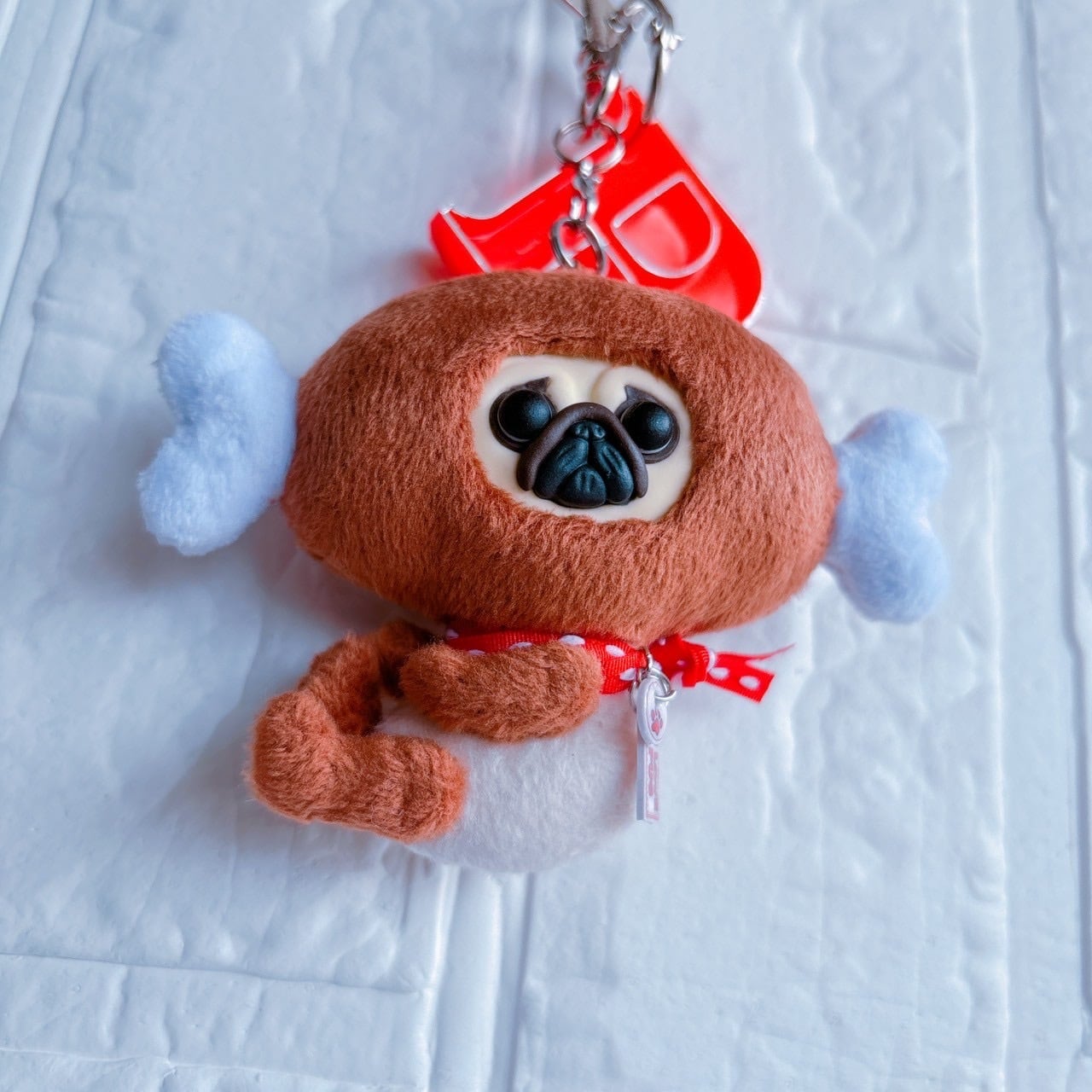ボア生地を中心に、リボンなどを組み合わせて、ひとつひとつ手作業で仕上げています。表情もひとつひとつ違います。